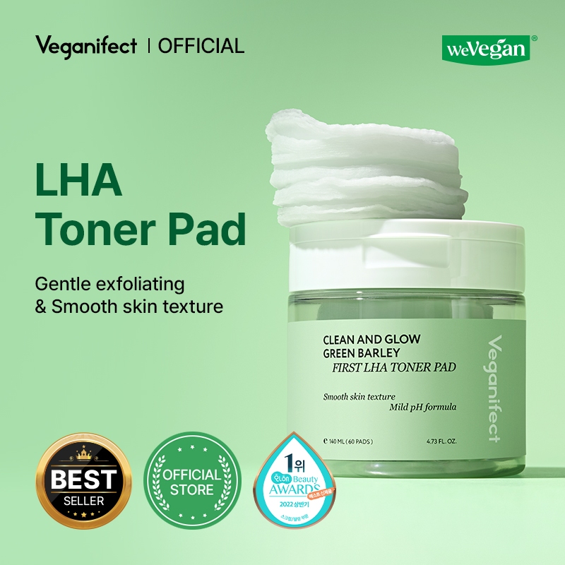 [Veganifect] LHA Toner Pad (60 Count) / Daily Gentle Exfoliating / Refining pores & Hydrating for Dry, Sensitive Skin and Detoxify / Vegan Certified / Clean and glow Skin texture