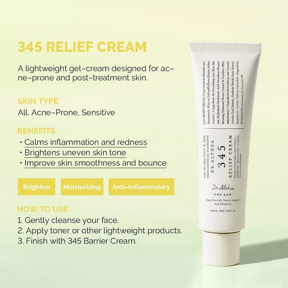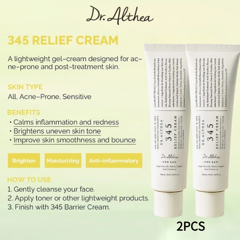 Dr.Althea 345 Relief Cream/147 Barrier Repair Cream,Acne Relief, Redness Calming For Face Skin Care