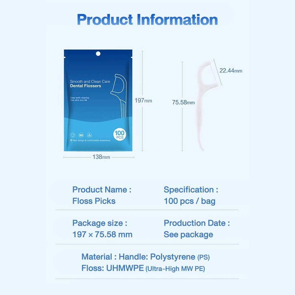 Stick Dental Floss Flosser Picks Teeth Clean Oral Care Gentle Clean Soft Floss 100pcs