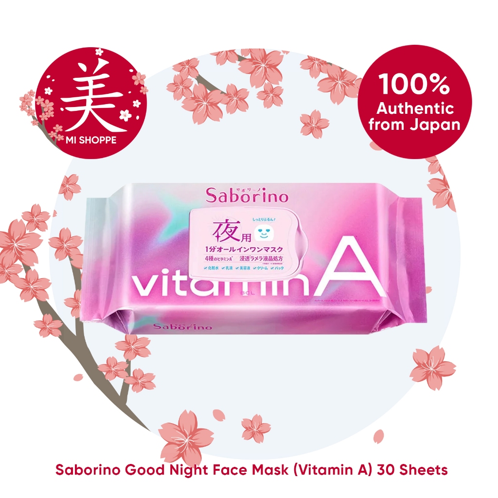 Saborino Good Night Face Mask (Vitamin A) 30 Sheets | 100% Authentic from Japan