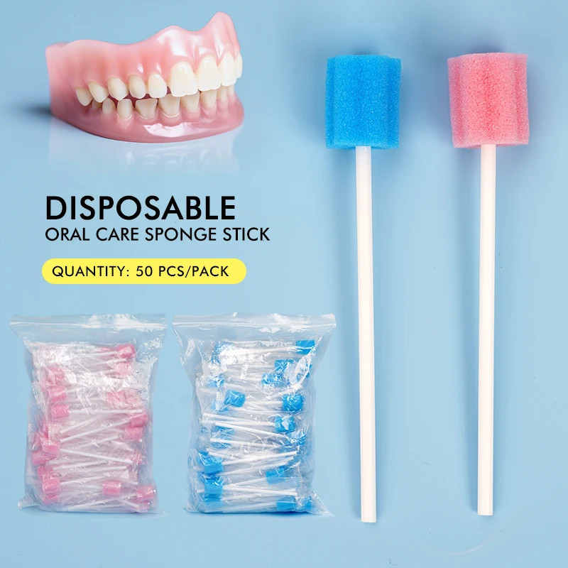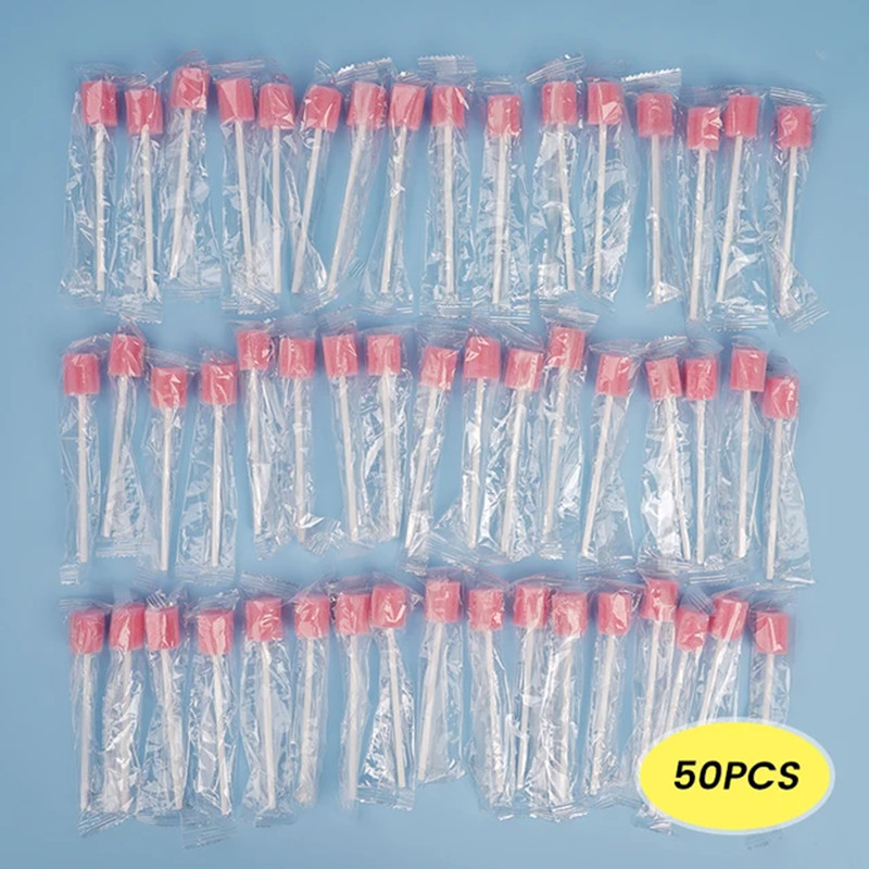 50Pcs Disposable Oral Care Sponge Head with Stick Micro Swabs Mouth Tooth Cleaning Toothbrush