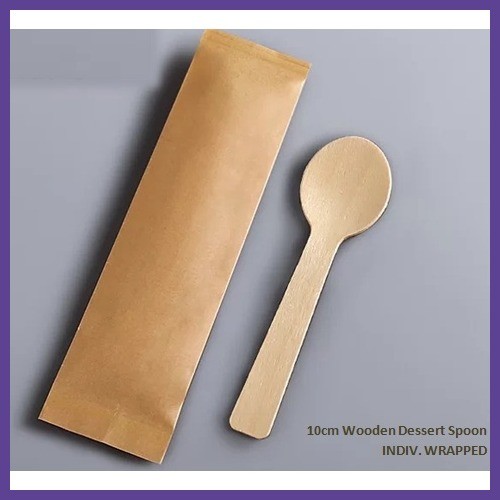 ㍿ ☸ [100pcs] 10cm Wooden dessert spoon - INDIV WRAPPED