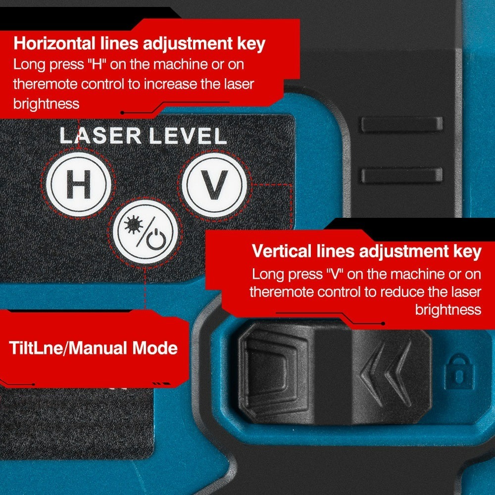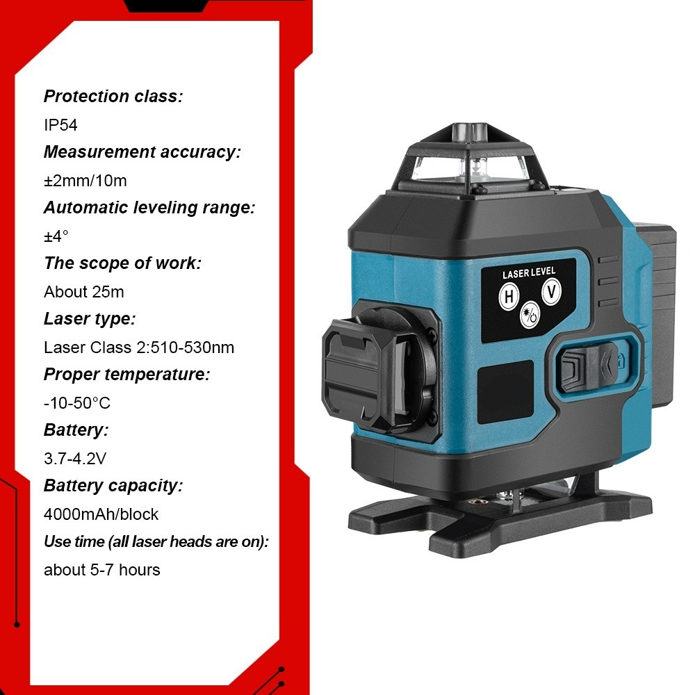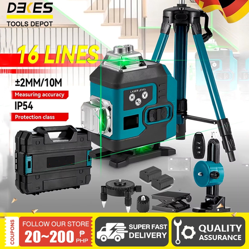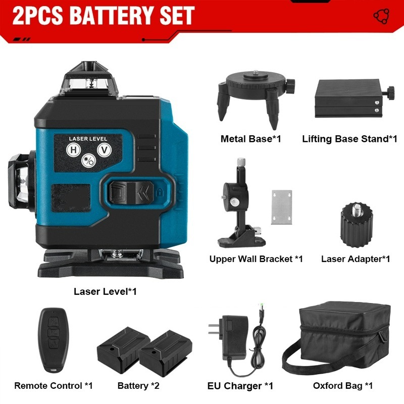 16 Lines Laser Level Green Line 4D SelfLeveling 360 Horizontal Vertical Li-ion Battery Remote Contro