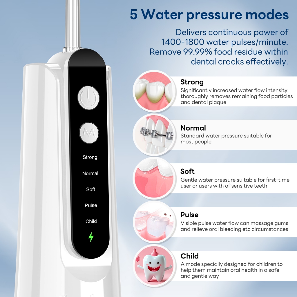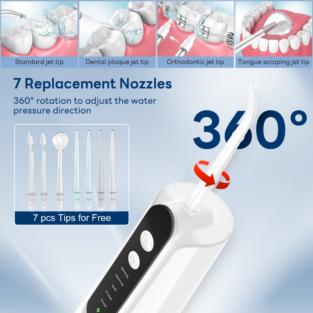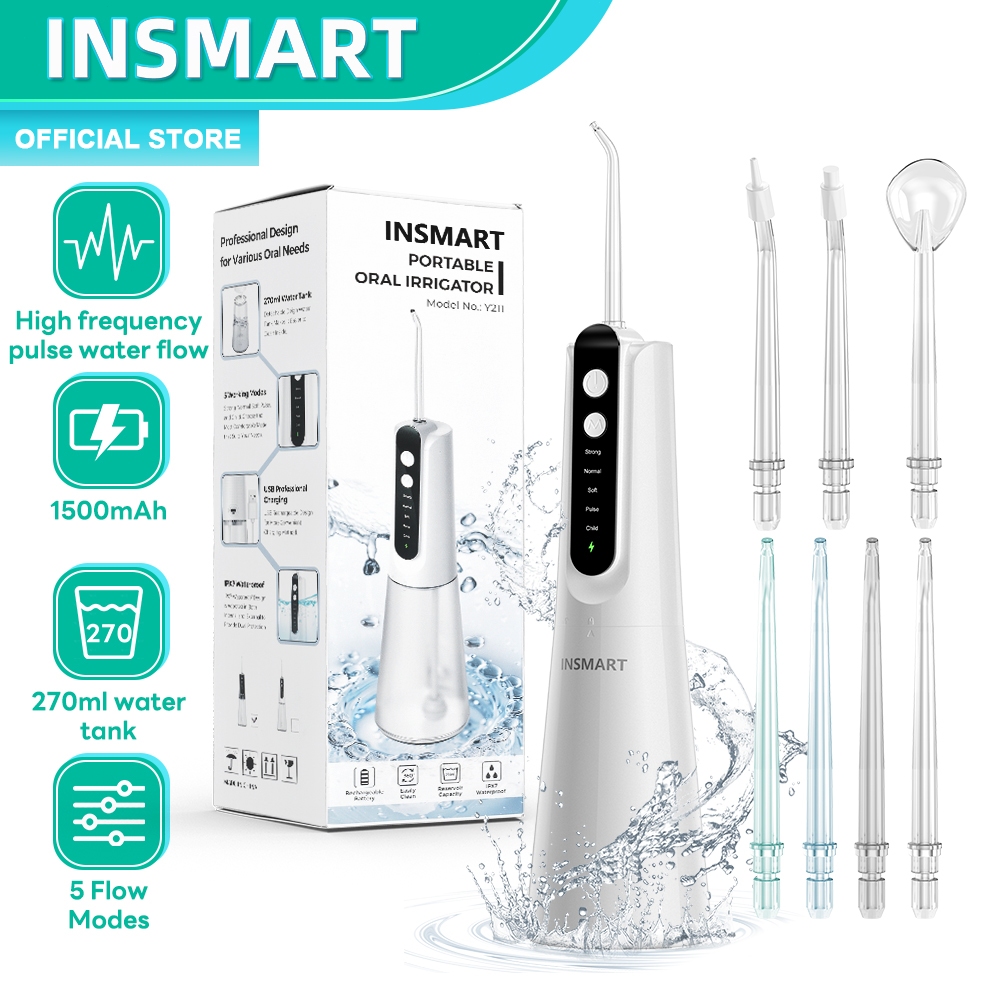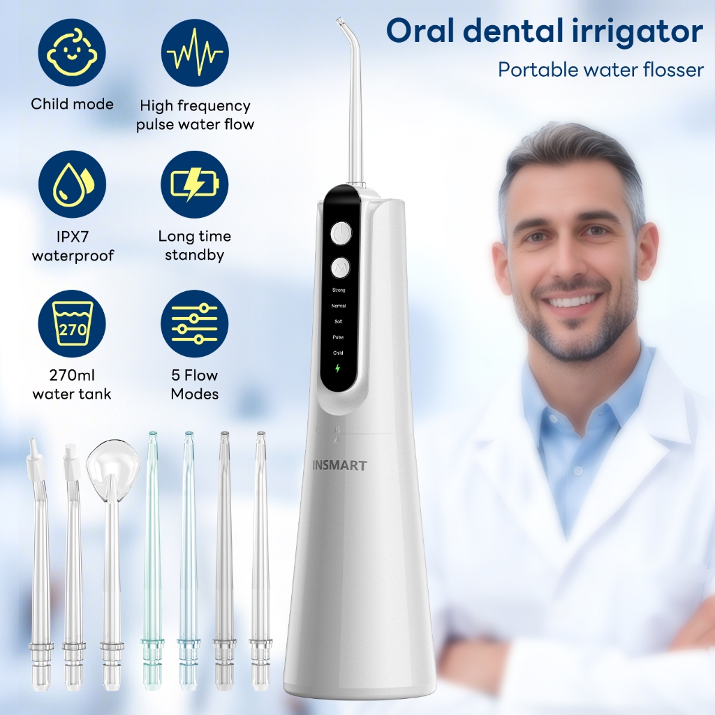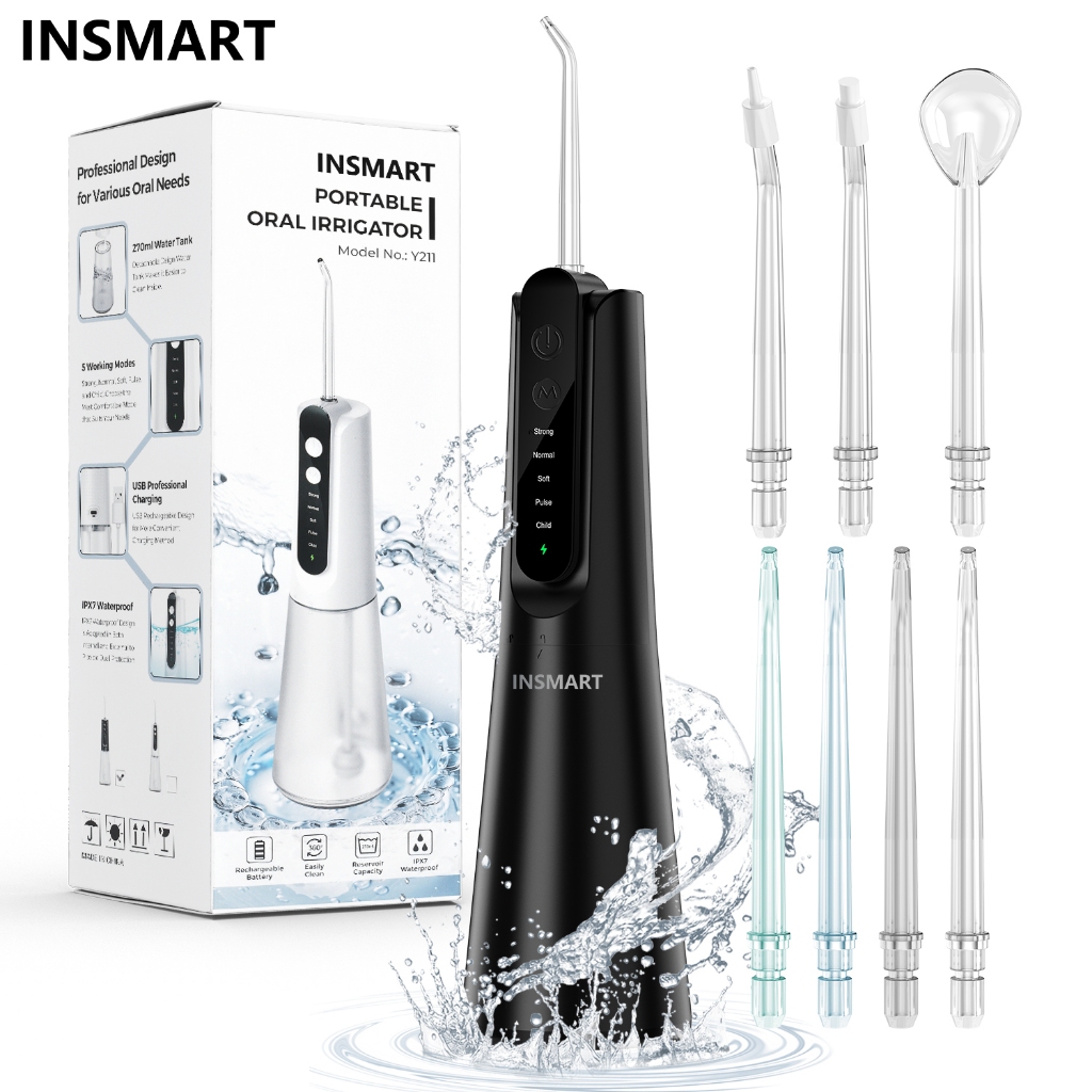 INSMART Convenient Dental Scaler 5 Water Pressure Modes Remove Tartar 7 PCS Replacement Mouth
