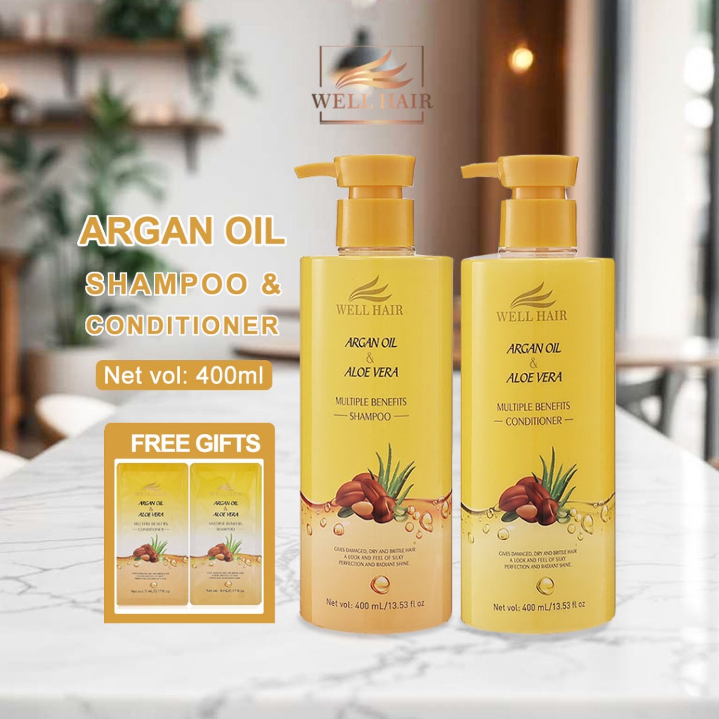 Well Hair Shampoo & Conditioner Argan Oil & Aloe Vera Cleasing Scalp Nourish and Smooth Hair 400ml
