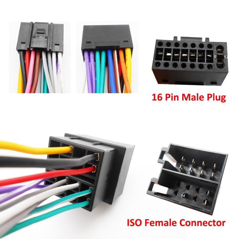 16 Pin to ISO Cable Adapter Wiring Harness Universal Accessory Wire For 2 Din Radio Car Android Head Unit