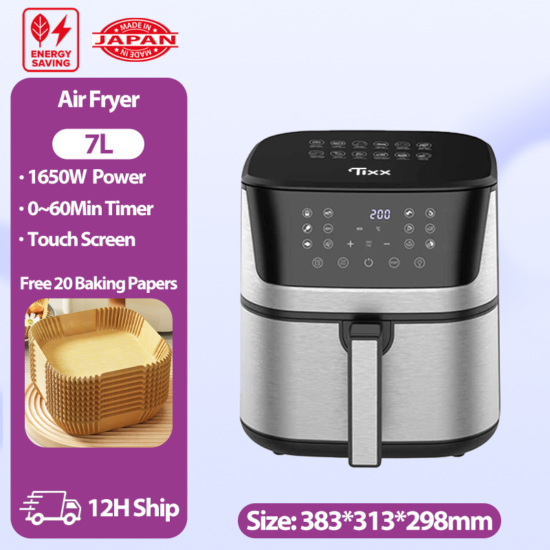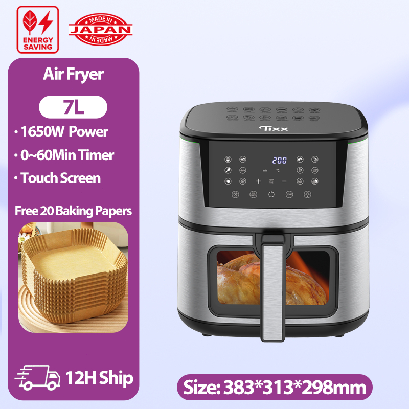 Tixx 7L Air Fryer Visual Large Window 1650W Power Digital Touch Screen With Timer Oil-Free Non-Stick