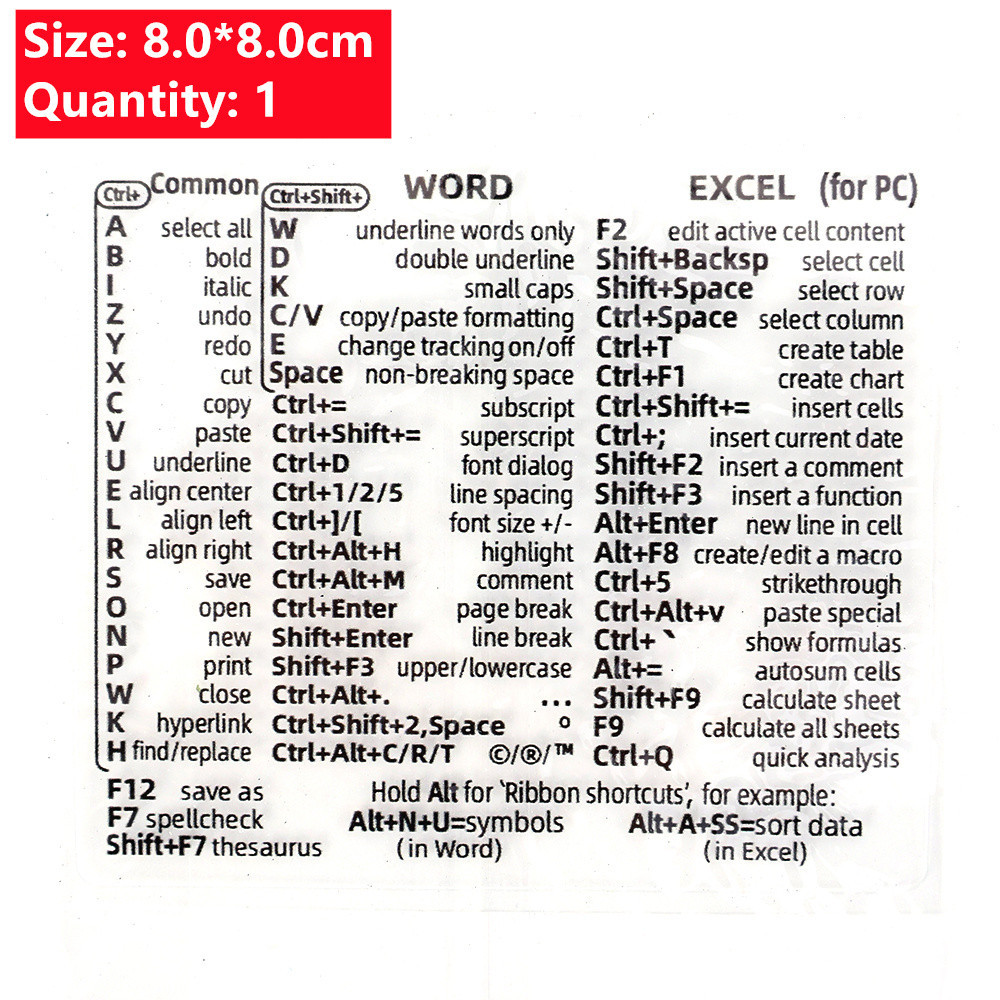 16 Styles Self Adhesive Waterproof Computer Sticker DIY Keyboard Shortcut Key Sticker for Laptop Window PS Photoshop