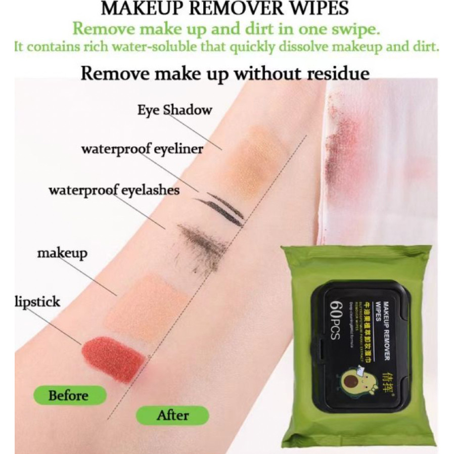 60pcs/pack{pAvocado.zB;Makeup Removal Wipes Deep Cleansing Make,ZI!up,DI,removal