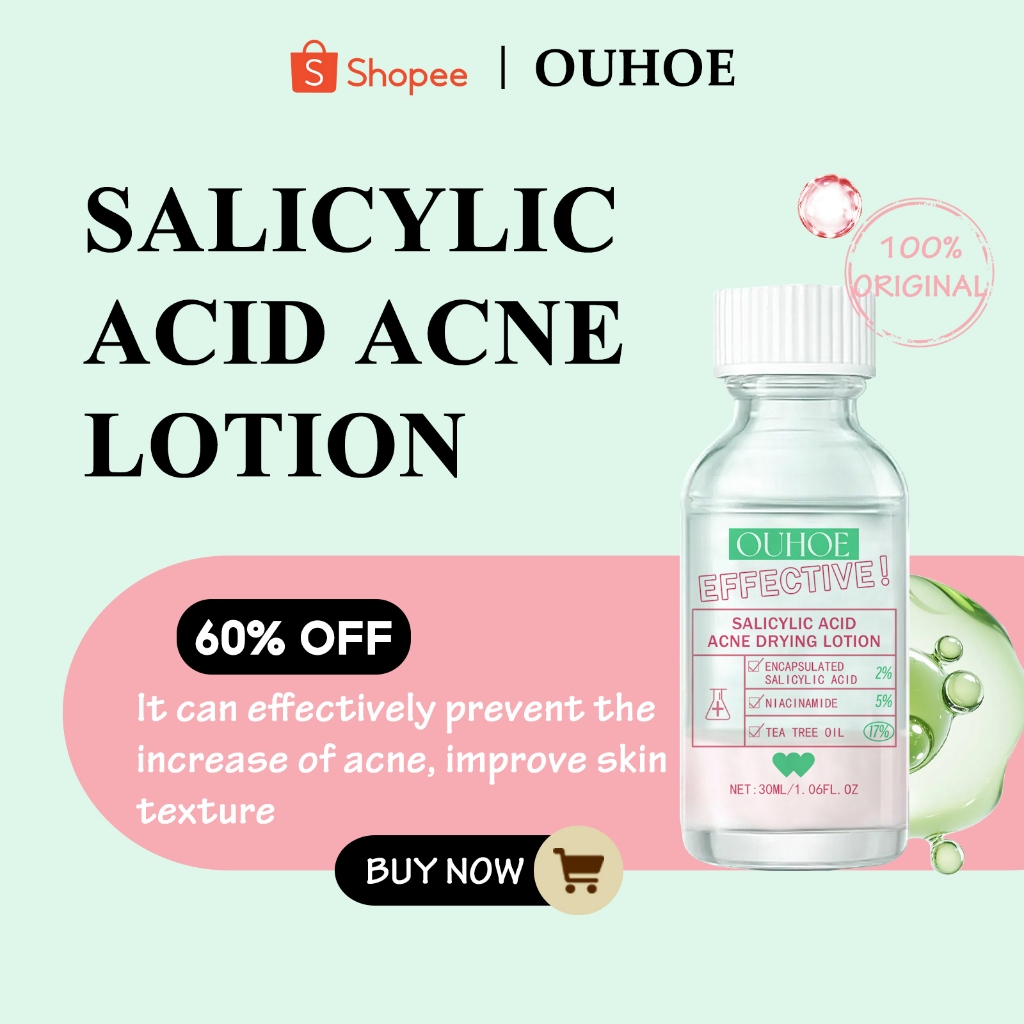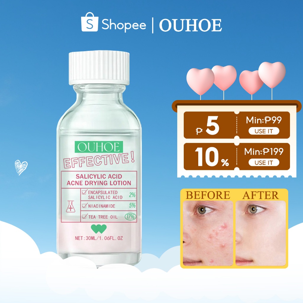 OUHOE Salicylic Acid Acne Drying Lotion 30ml Pimple Warrior Salicylic Acid Acne Treatment Clarifier