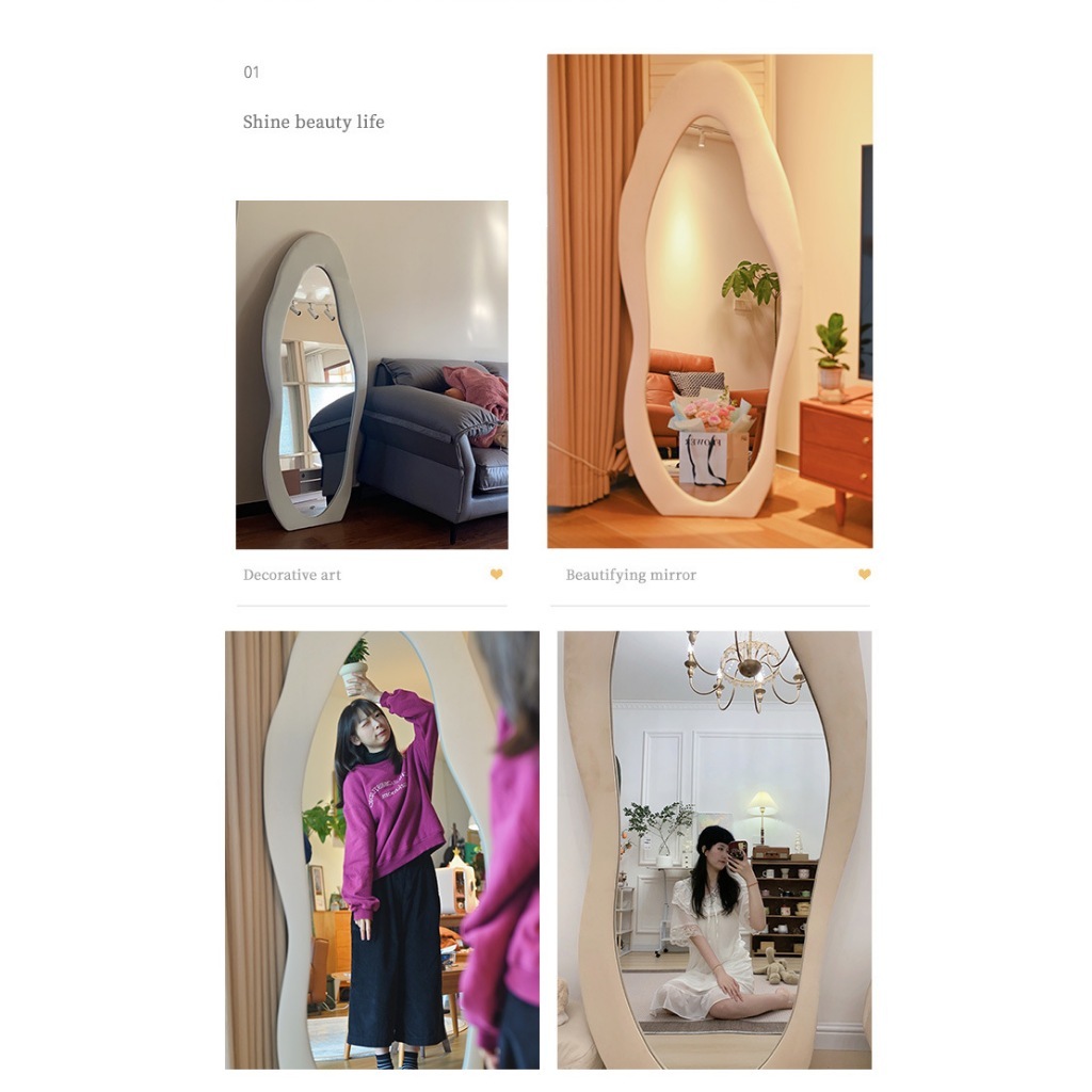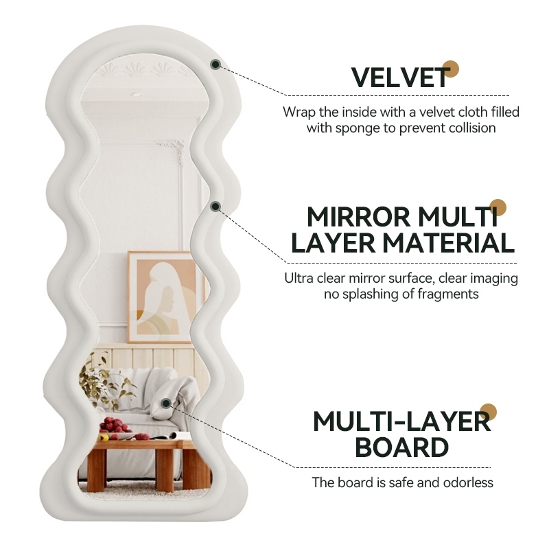 160/170 CM Full Body Mirror Whole Body Mirror with Stand Wavy Floor Mirror for Girl Living room