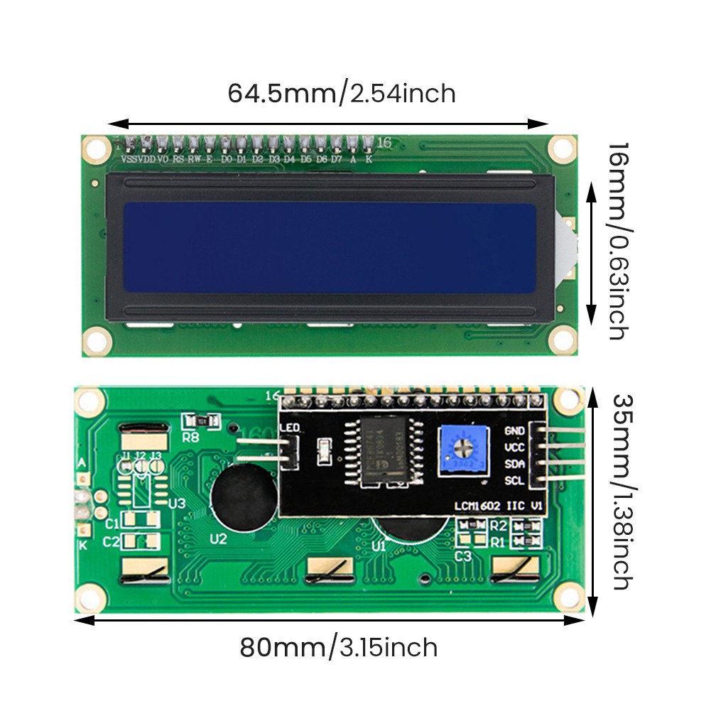 1602 LCD Display Module Blue/Yellow Green Screen 16x2 Character LCD Module Display HD44780 With IIC