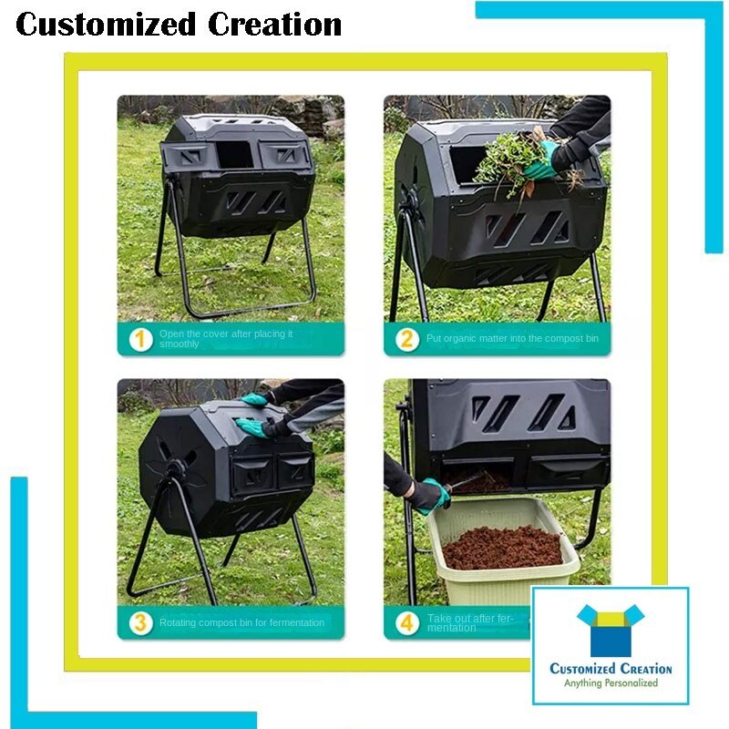 160L Compost Bin with 2 Chambers Dual Rotating