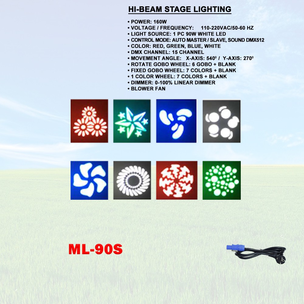 160W HI BEAM STAGE LIGHT 110-220VAC 90W WHITE LED DMX 15 CHANNEL 7 COLORS BLOWER FAN ML-90S