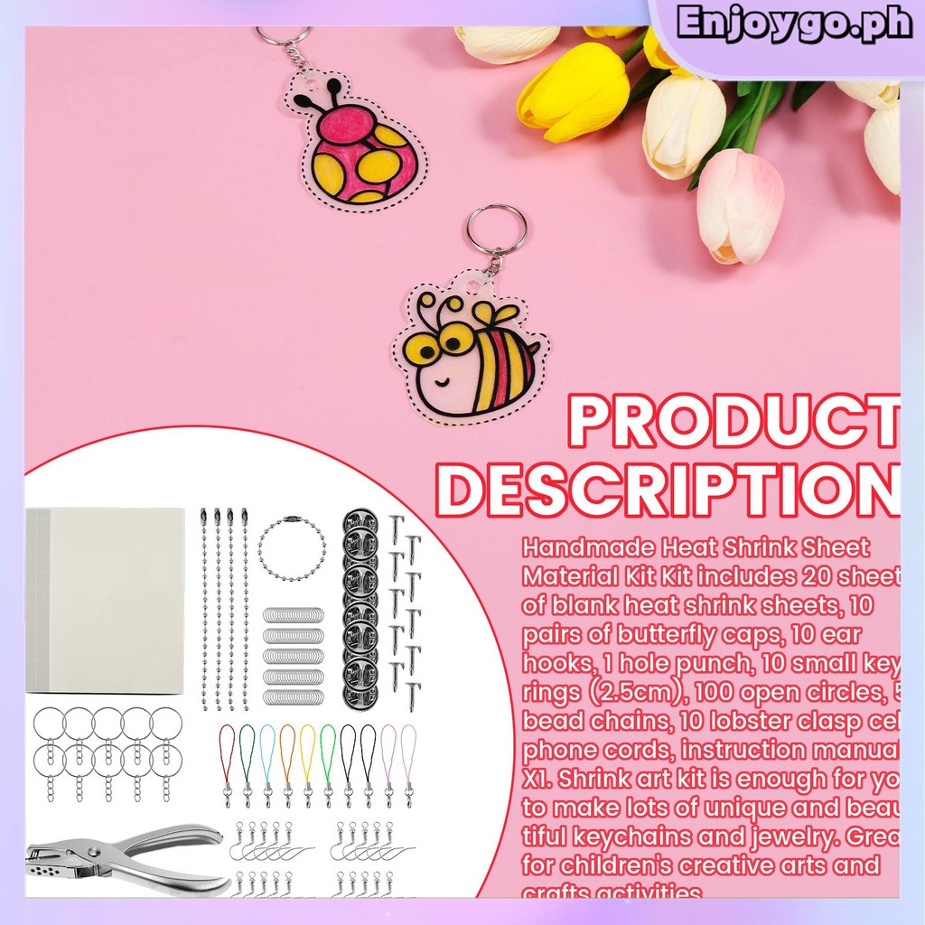 166Pcs Shrinky Dink Sheets Kit Practical Shrink Paper Keychain Kit with 20 Shrink Papers 10 Key Rings 10 Ear Hooks 100 Opening Ring Hole Puncher Shrinking Plastic SHOPSKC4275
