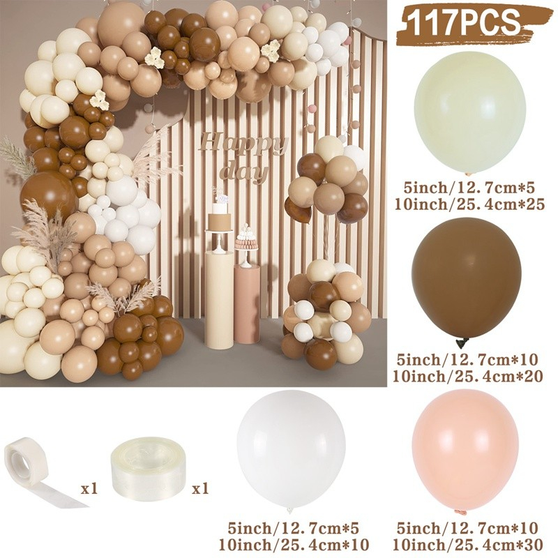 166pcs Coffee Brown Balloons Arch Kit Birthday Party Decorations Latex Garland Balloons Wedding Party Needs Balloons Party Supplies Happy Birthday Balloon Set Home Partyneeds Decor
