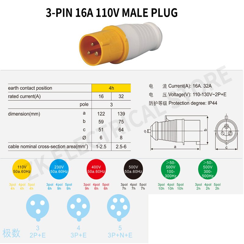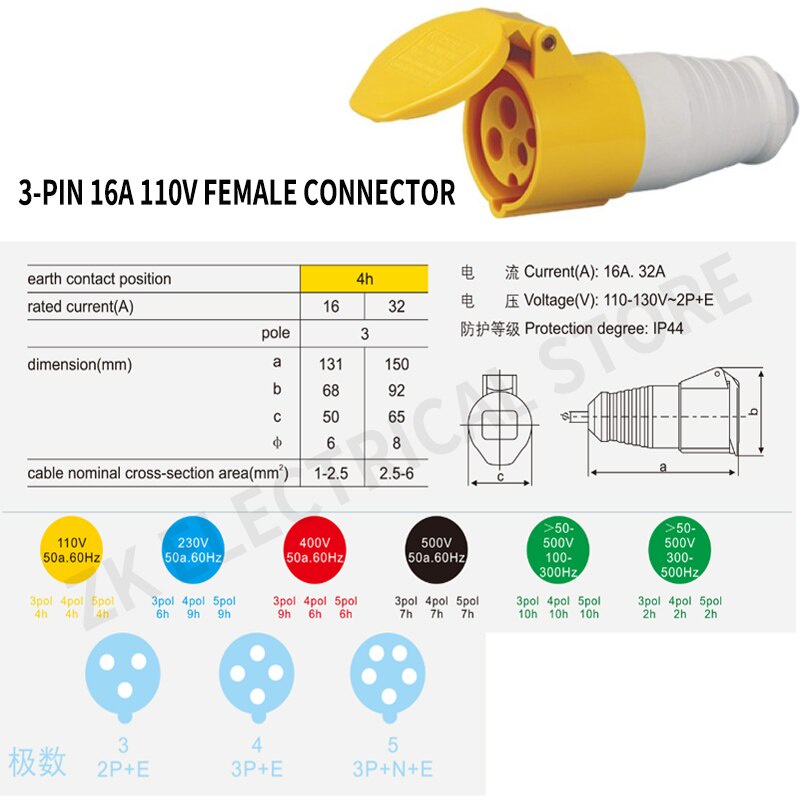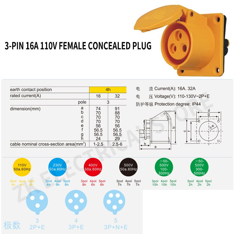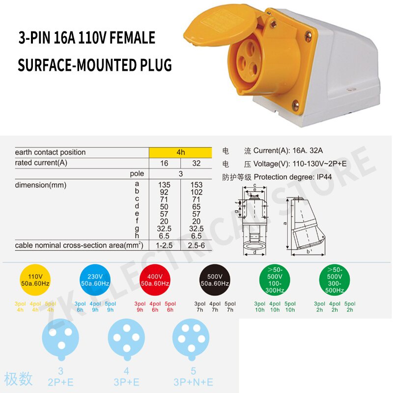 16A 32A110V 3-pin round industrial plug TYP overhaul power box socket, waterproof and anti-dropping