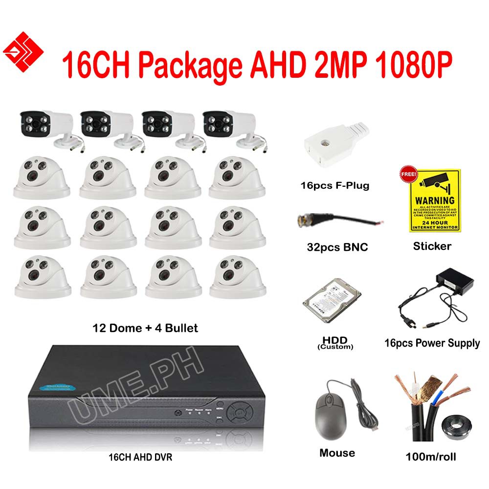 16CH 2MP 1080P AHD IR CCTV DVR Camera Package Kit