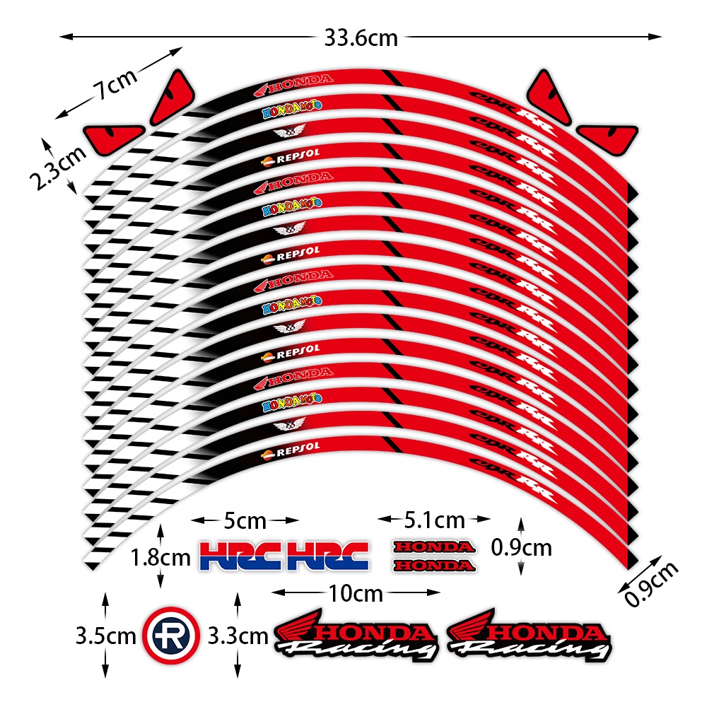 16PCS 17 inch Motorcycle Reflective Rim Wheel Decals Wheel hub Stickers for honda MOTOGB repsol CT125 H2 CB650R CB300R CBR150R CB150R CB1100