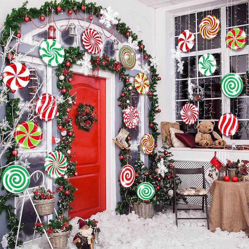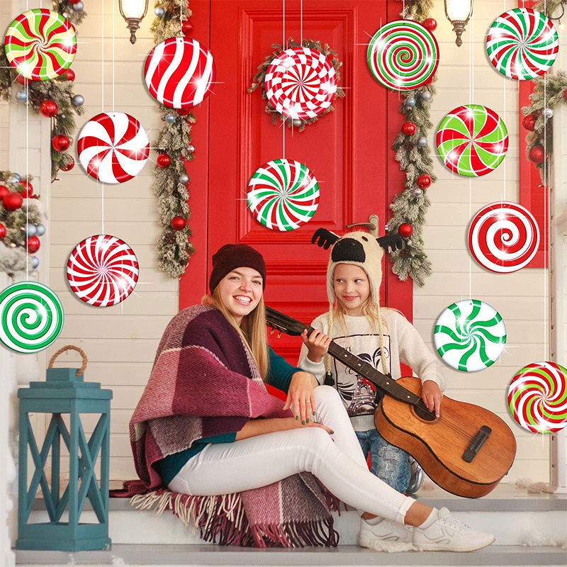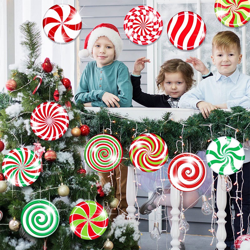 16PCS/Set Christmas Tree Colorful Round Candy Pendant Ornaments Christmas Tree Ornaments Xmas Tree Decorative Pendant Accessories
