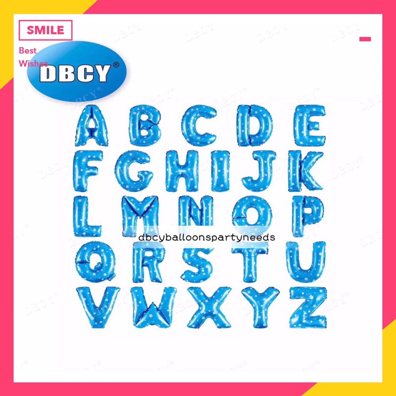 16inch blue star print letter foil balloon A-M birthday wedding partyneeds decorations
