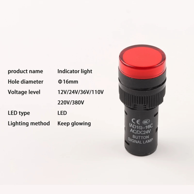 16mm 12v 24v 110v 220v 380v AD16-16C panel mount power signal led indicator light blue green red white yellow ac dc pilot lamp