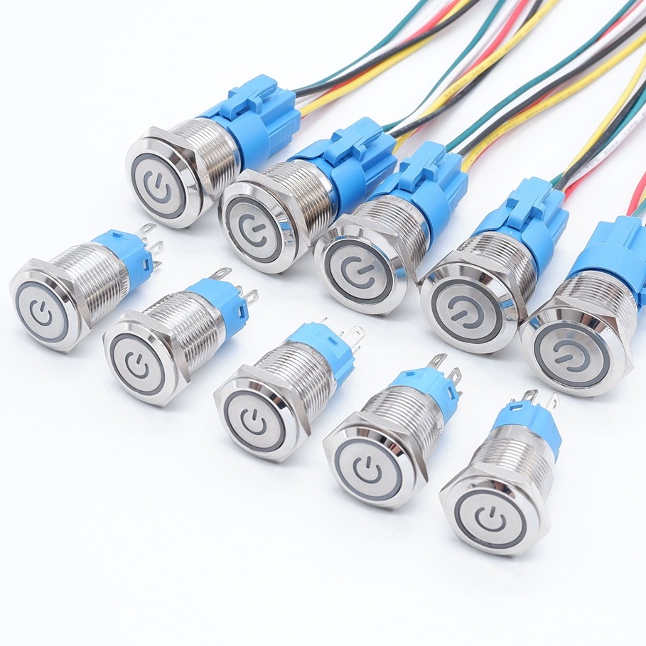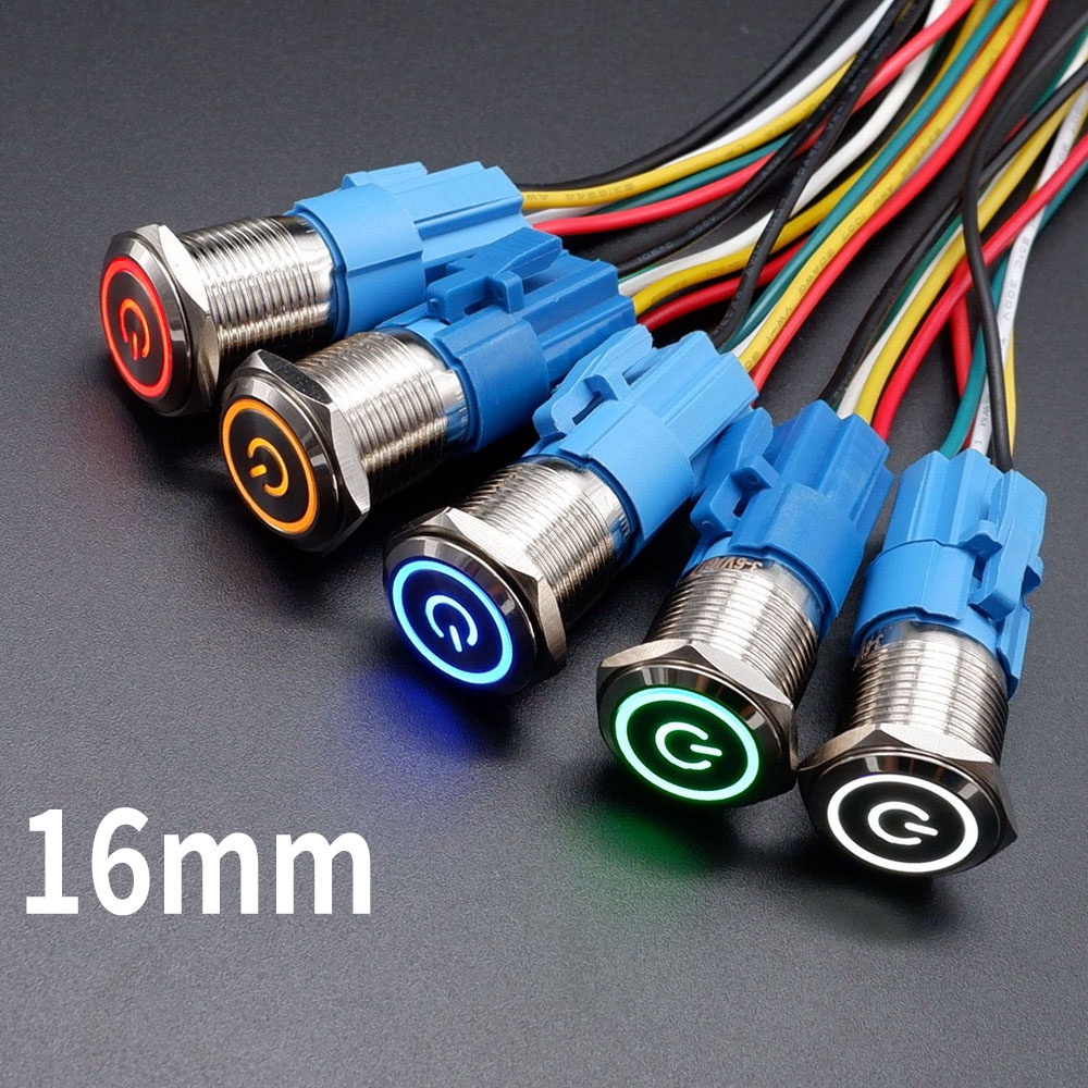 16mm Metal Push Smart Button Switch Car Press Button Light LED Lamp Illuminated Power for PC Fixation Self-reset Switches 5V 12V