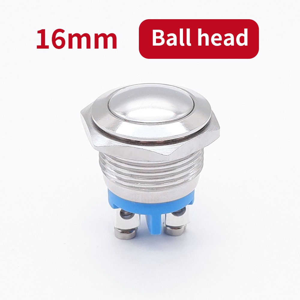 16mm Momentary Reset Metal Push Button Switch 1NO Ball High Flat Head Screw Terminal Car Engine Doorbell PC Power Switch