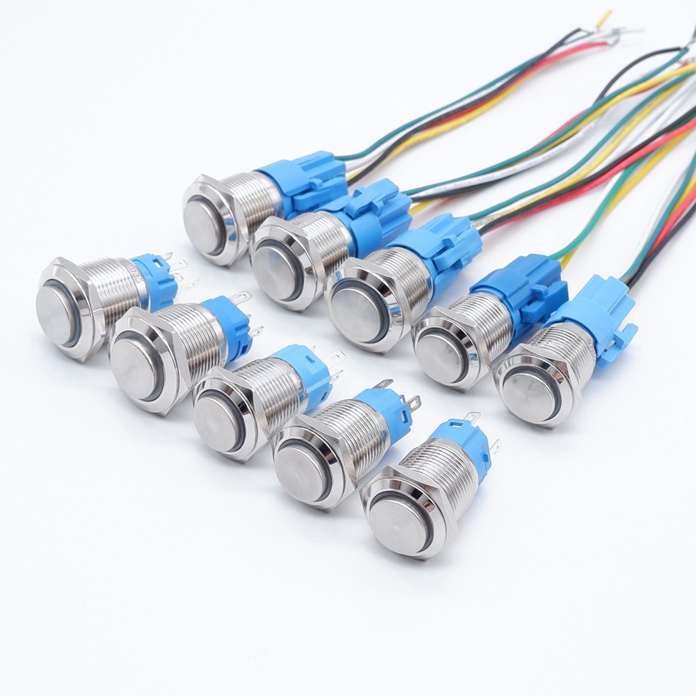 16mm Switch Button On Off Ring LED Light Car/PC Start Buttons Waterproof Electrical Power With Socket High Head 5V 12V 24V 220V
