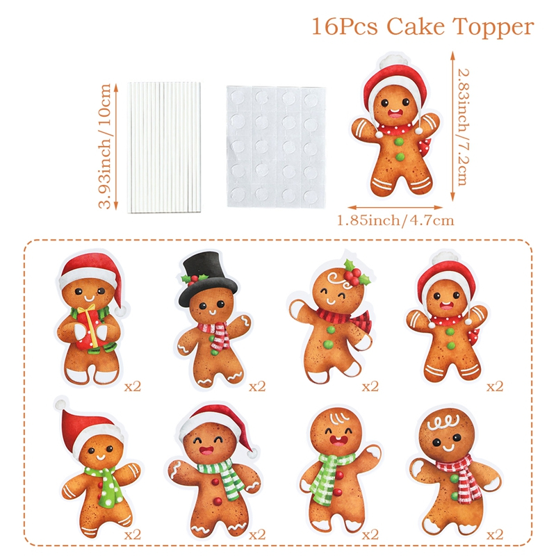 16pcs Gingerbread Man Cake Topper Different Expressions Christmas Cupcake Toppers Christmas Decor Glitter Gingerbread Man Cake Topper Christmas Party Needs