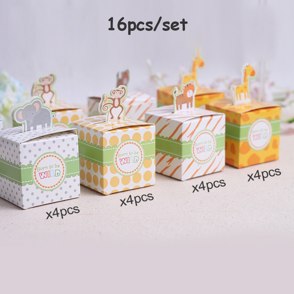 16pcs Mixed Animal Mini Candy Box Jungle Safari Favor Souvenir Giveaway Birthday Party Supply Gift