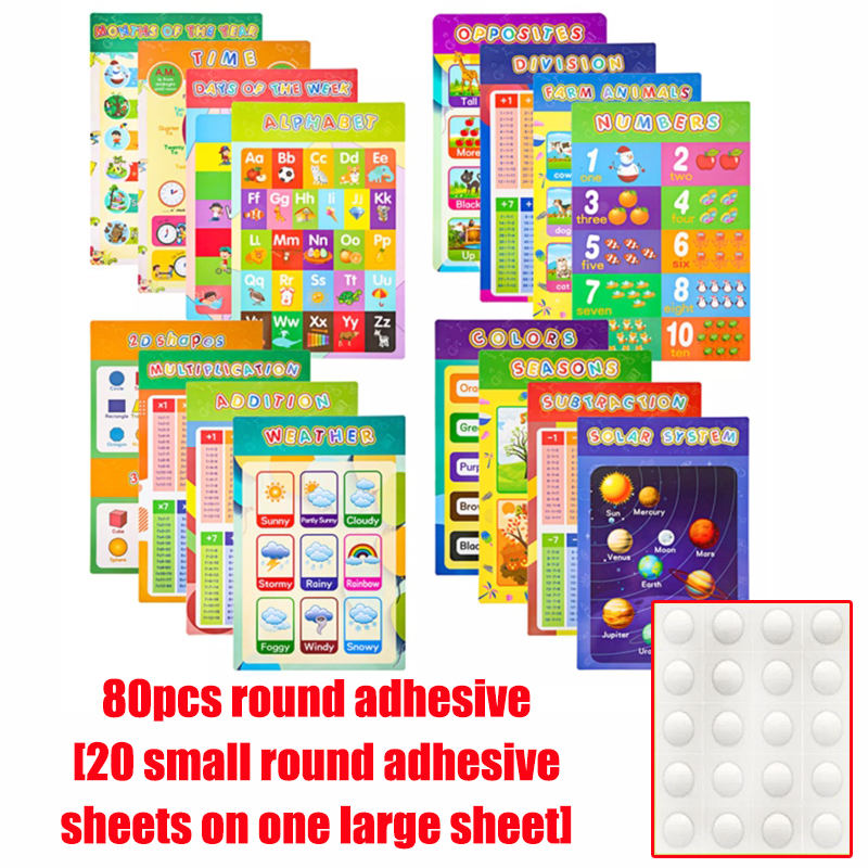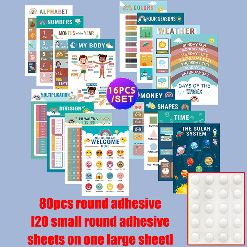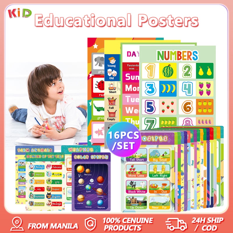 16pcs chart for kid educational set English Alphabet Numbers Colors Months Animals Early Education