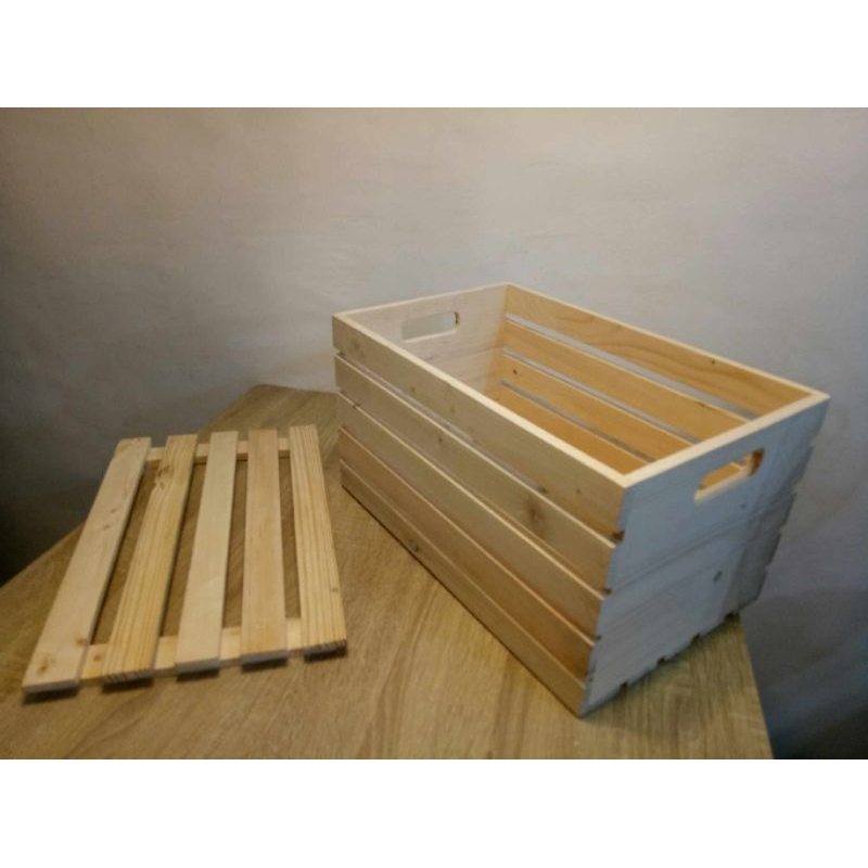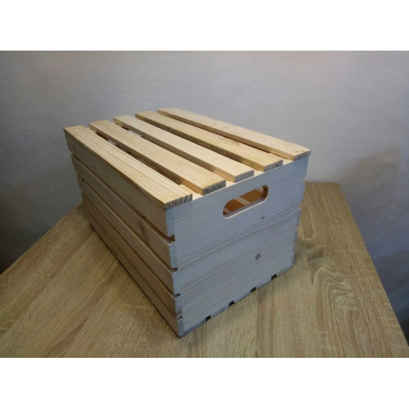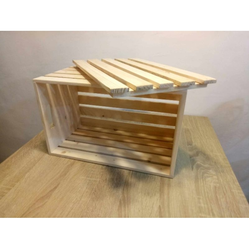16x10x9 Inches Wood Crates with Cover Plain Varnish Walnut White Color