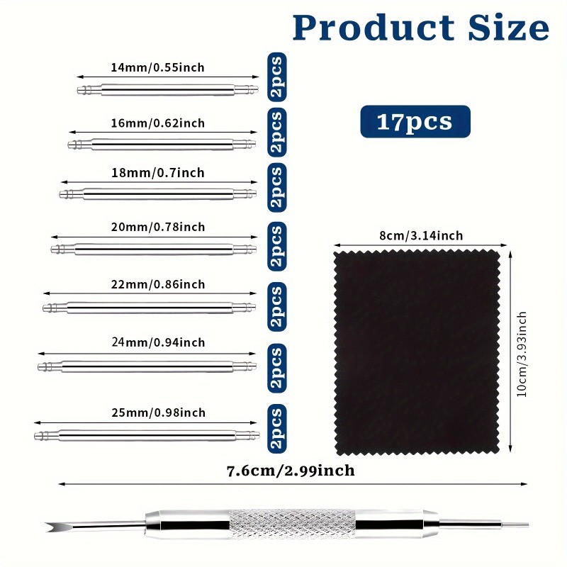 17 Piece Stainless Steel Watch Band Link Pin Tool Set - Durable 1.5mm Diameter Spring Bars for Watch Strap Adjustment & Repair Kit, No Assembly Required