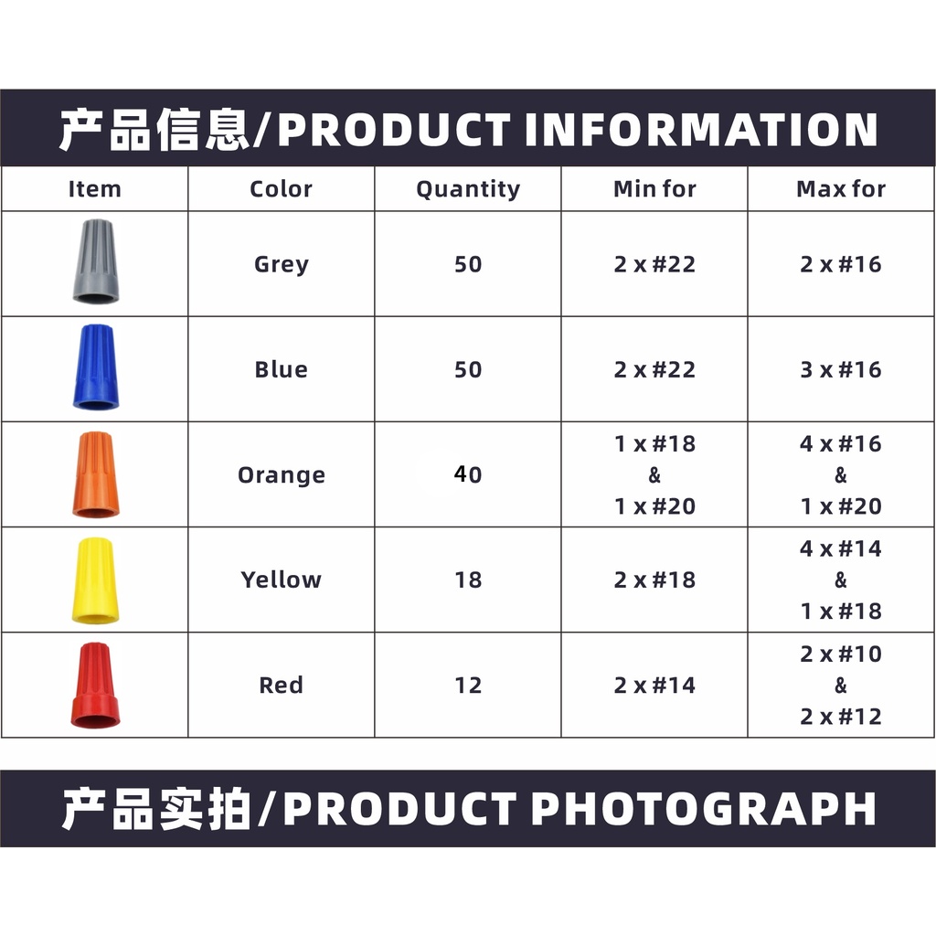 170/230 pcs combination kit, box mounted spiral wire pressing cap, quick connection terminal, spring wire pressing cap