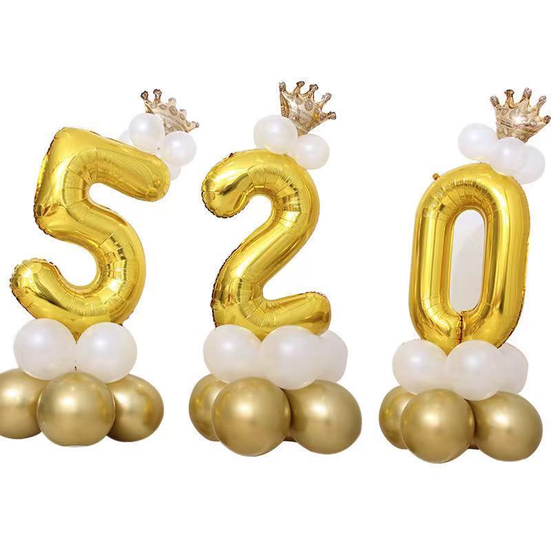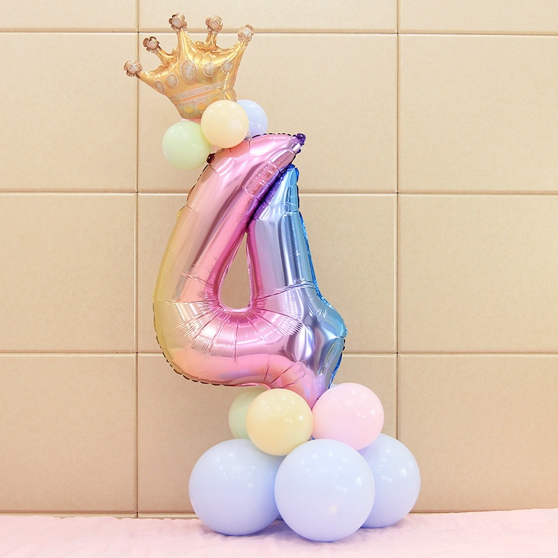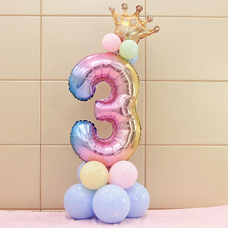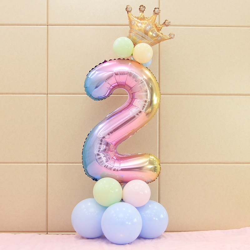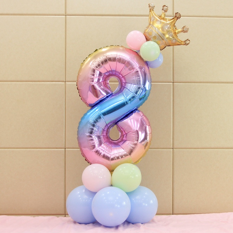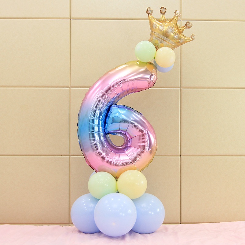 17Pcs Rainbow Number Foil Balloons Balloon Crown Ballon Wedding Decoration Birthday Party Supplies