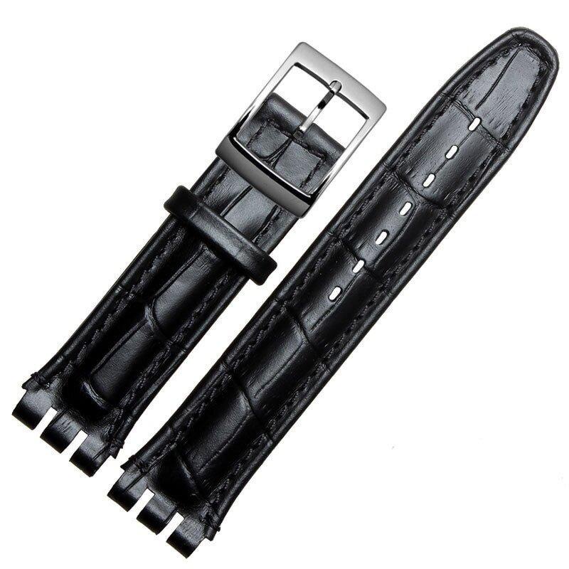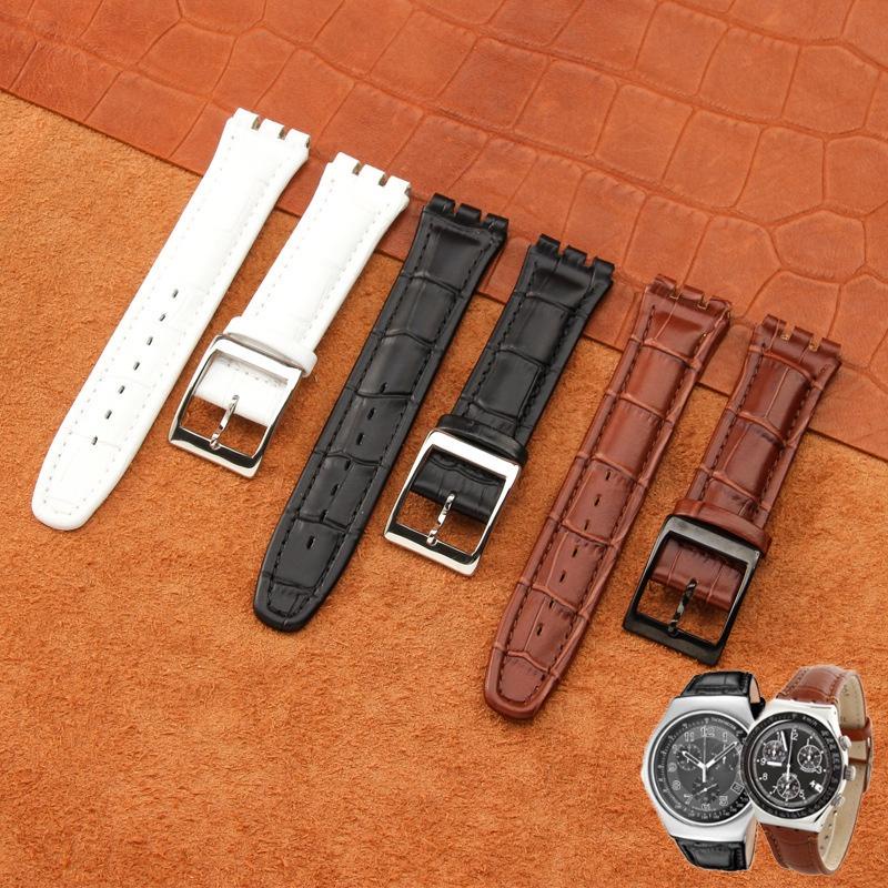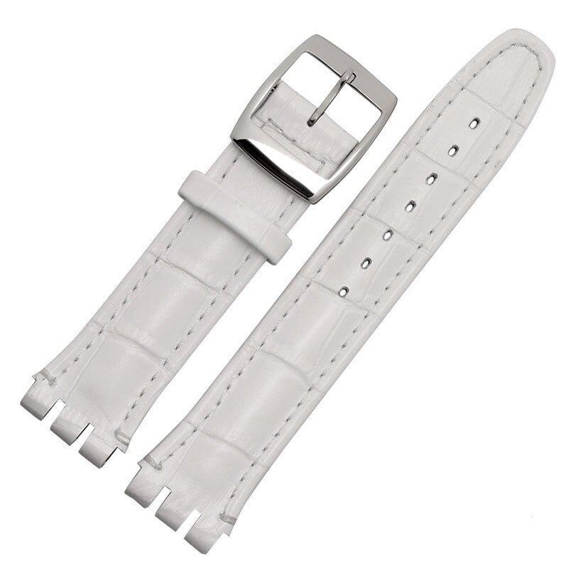 17mm 19mm Strap For Swatch Watch Band Waterproof Genuine Calf Leather Strap Black Brown White