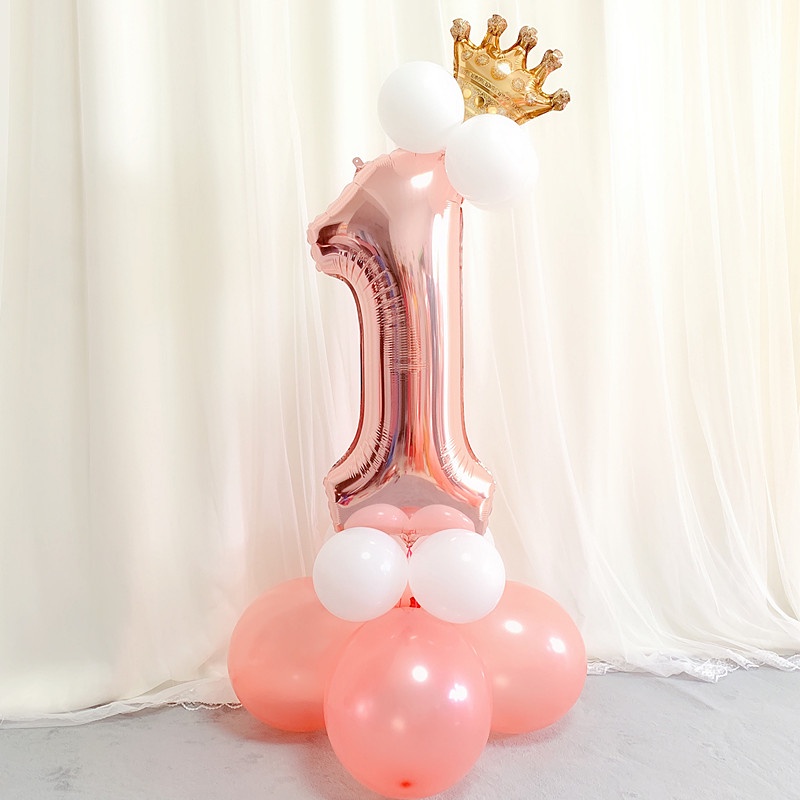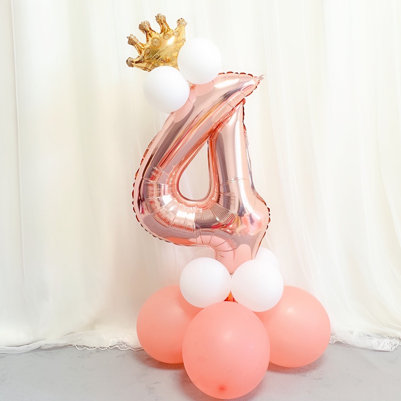 17pcs Rose Gold Balloons Set 32inch Number Crown Foil Balloon Standee Birthday Party Need Decoration