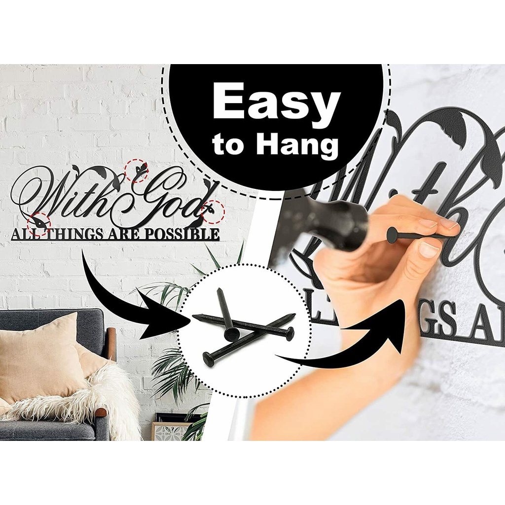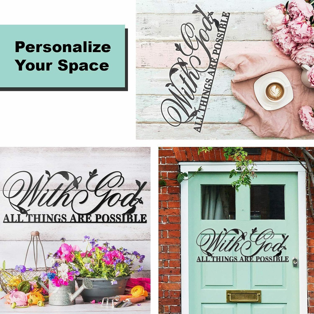 Metal wall art sign inspirational religious home decor with quote "With God all things are possible"