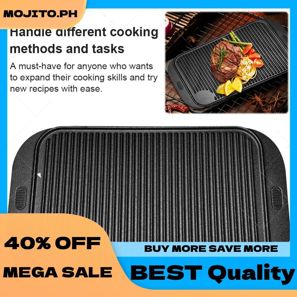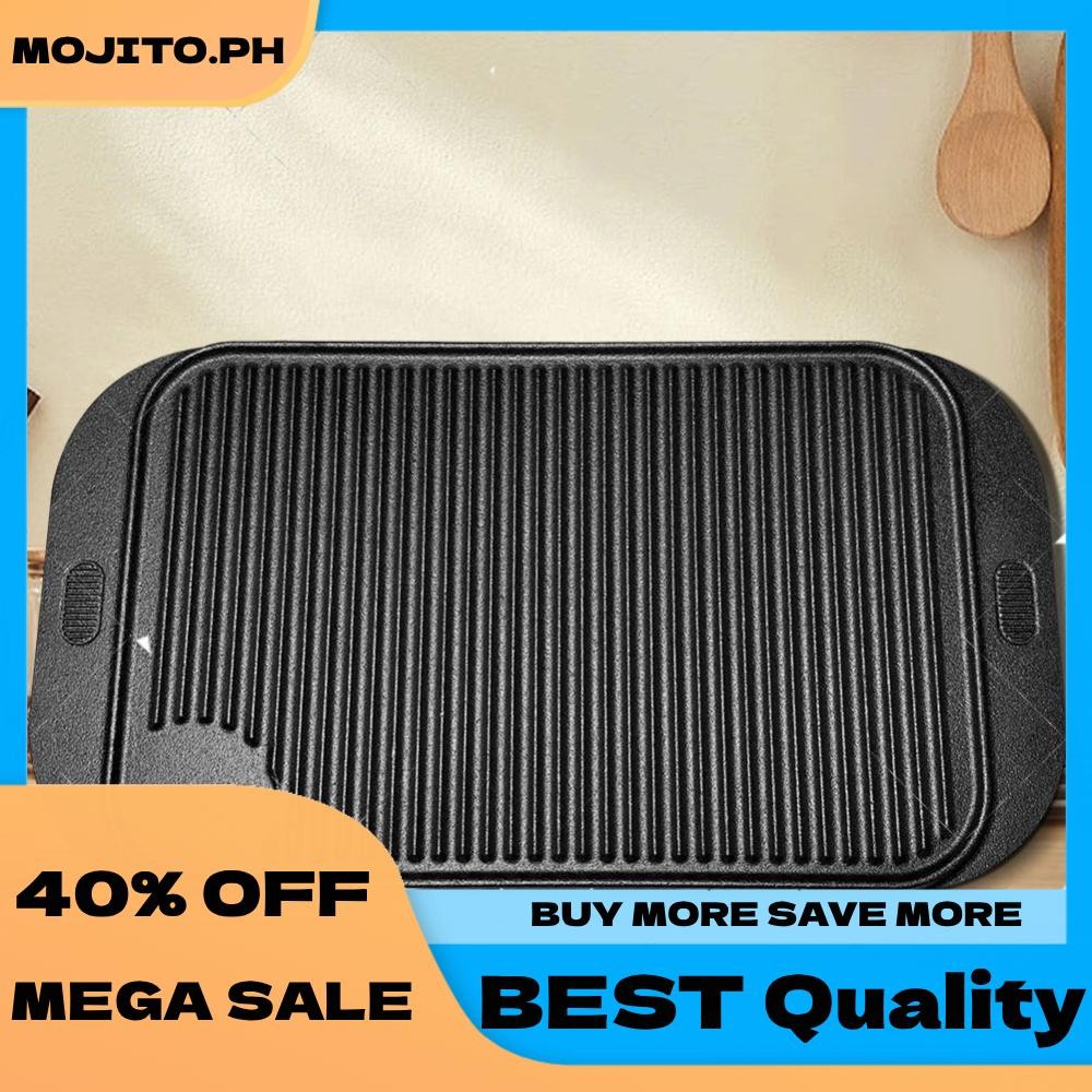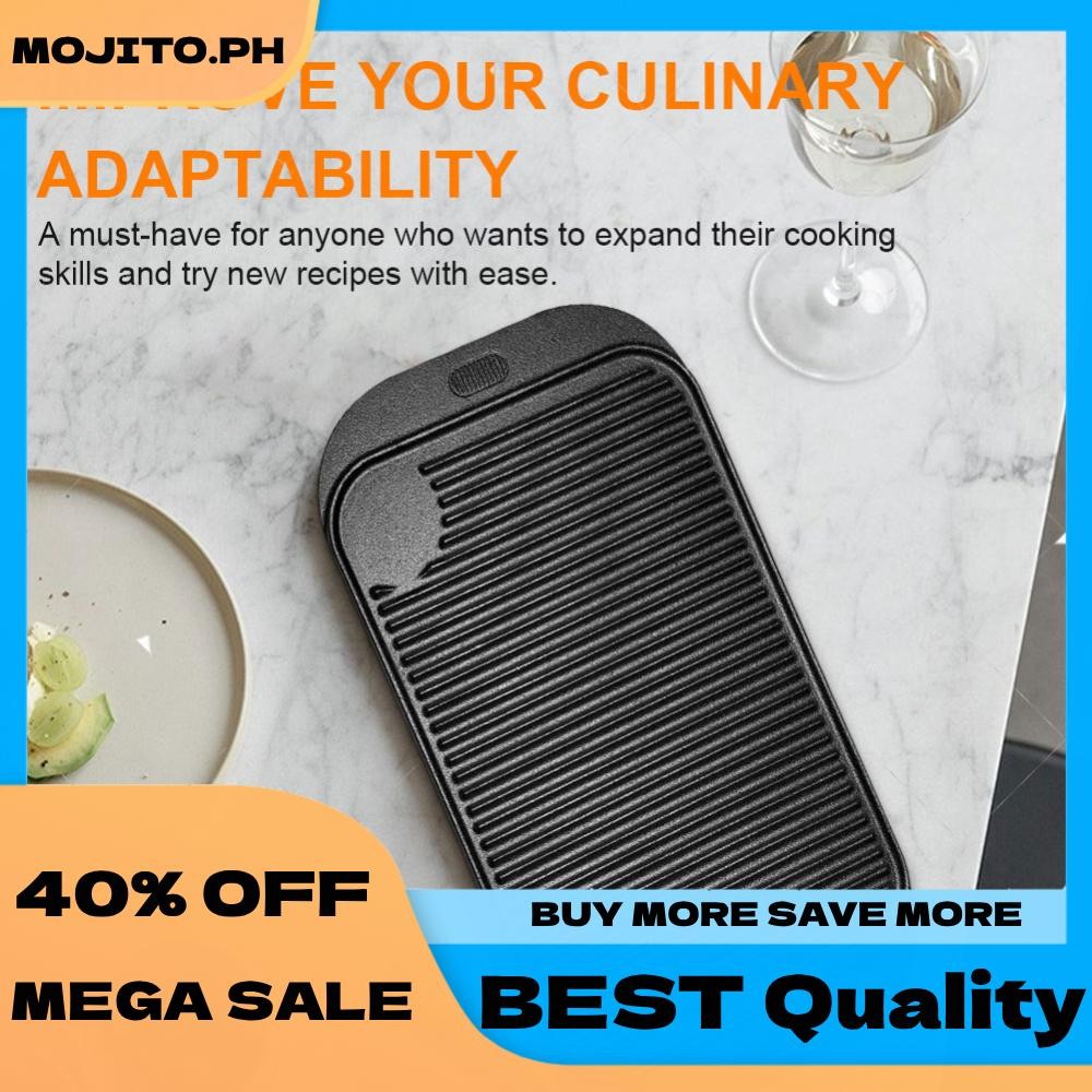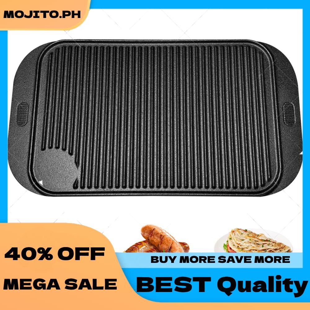 18.9inX10.2in Cast Iron Grill Plate Reversible Griddle Pan Skillet Flat Pan for Gas Stovetop Oven for Camping Roasting
