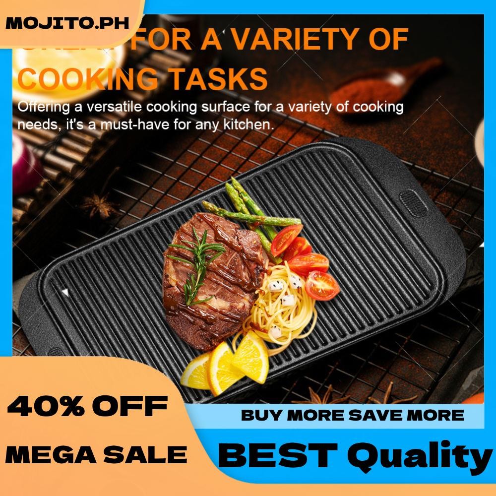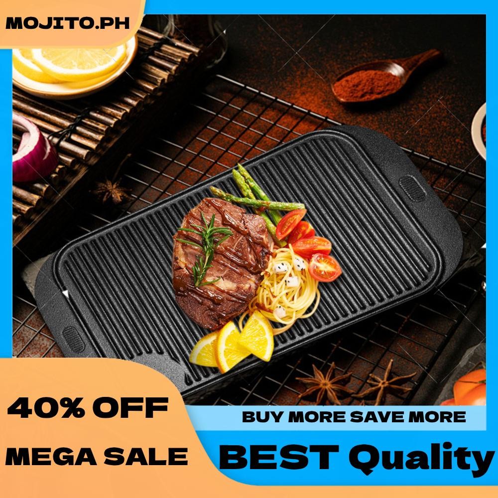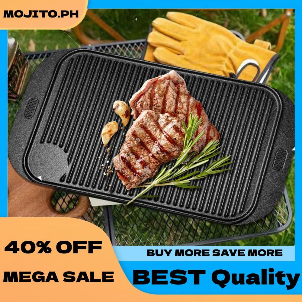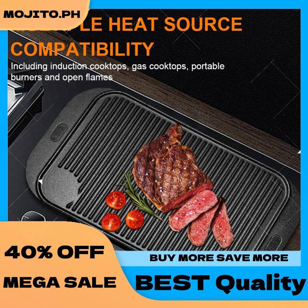 18.9inX10.2in Cast Iron Grill Plate Reversible Griddle Pan Skillet Flat Pan for Gas Stovetop Oven for Camping Roasting