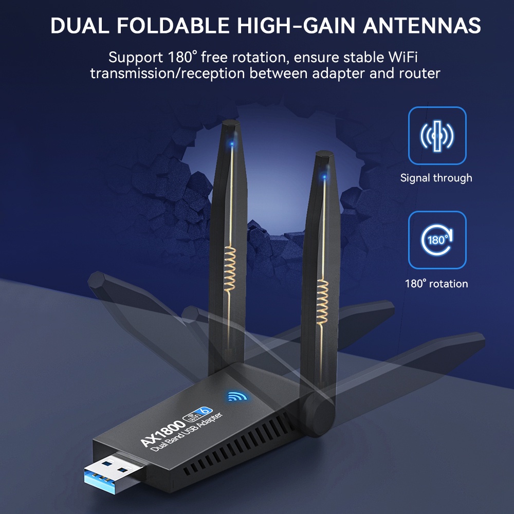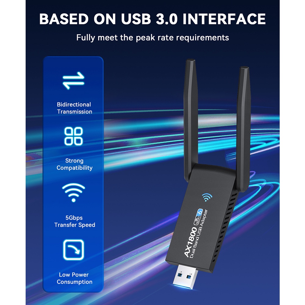 1800M USB WIFI 6 Adapter Dual Antenna 1300M Network Card AX1800 Dual Band 2.4G 5G WiFi Adapter for PC Laptop Tablet Game Controller