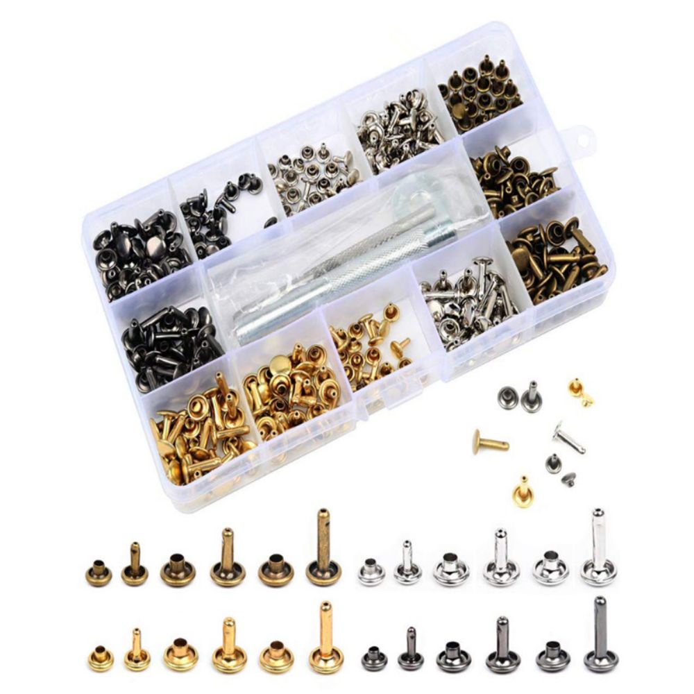 180Sets Leather Rivets DIY Double Cap Rivet With Install Tools Leather Craft Repairs Clothes Decor