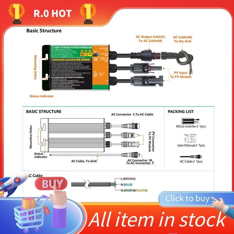 180W Solar Microinverter Solar Grid Tie Inverter Metal Inverter Waterproof Pure Sine MicroInverter DC30V Input 230V