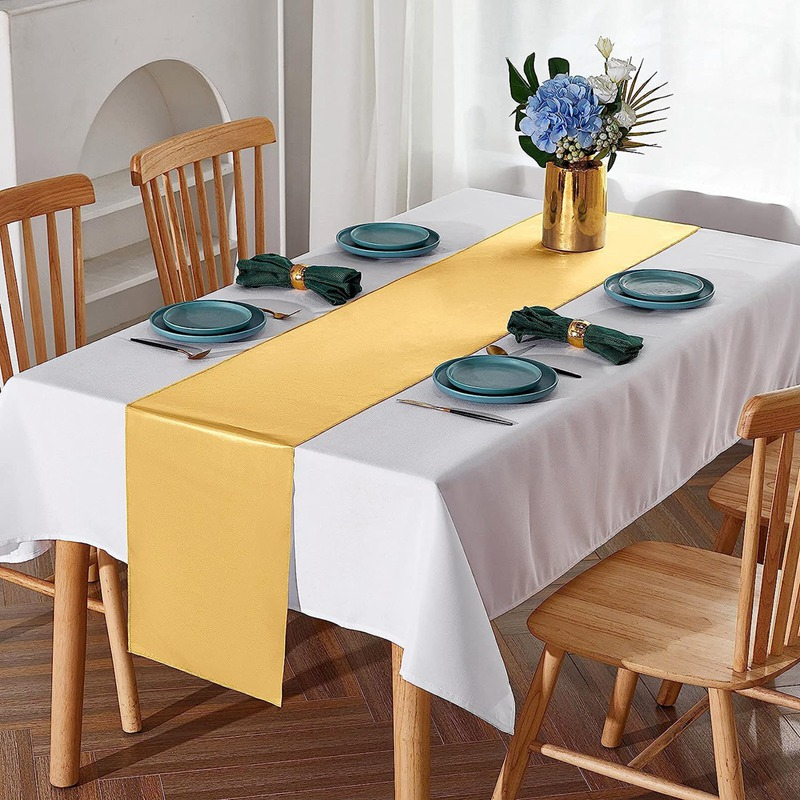 180cm Rose Gold Polyester Table Runner for Dining Table Holographic Mantel Table Cloth Smooth Gold Table Cover Table Decoration Home Living Wedding Decoraions Birthday Decoration