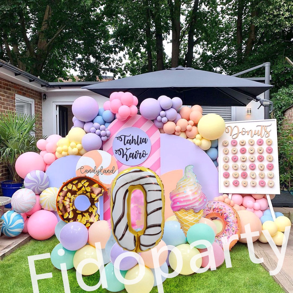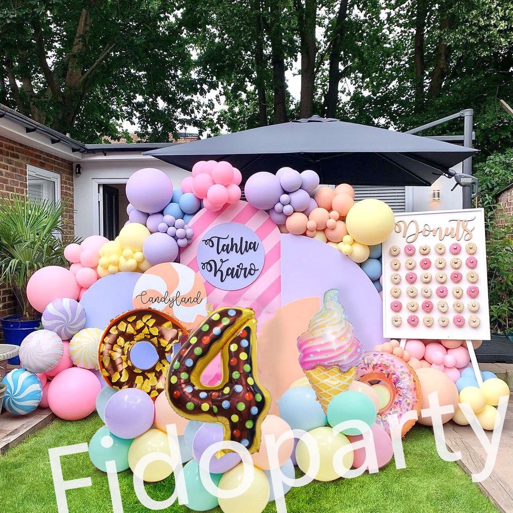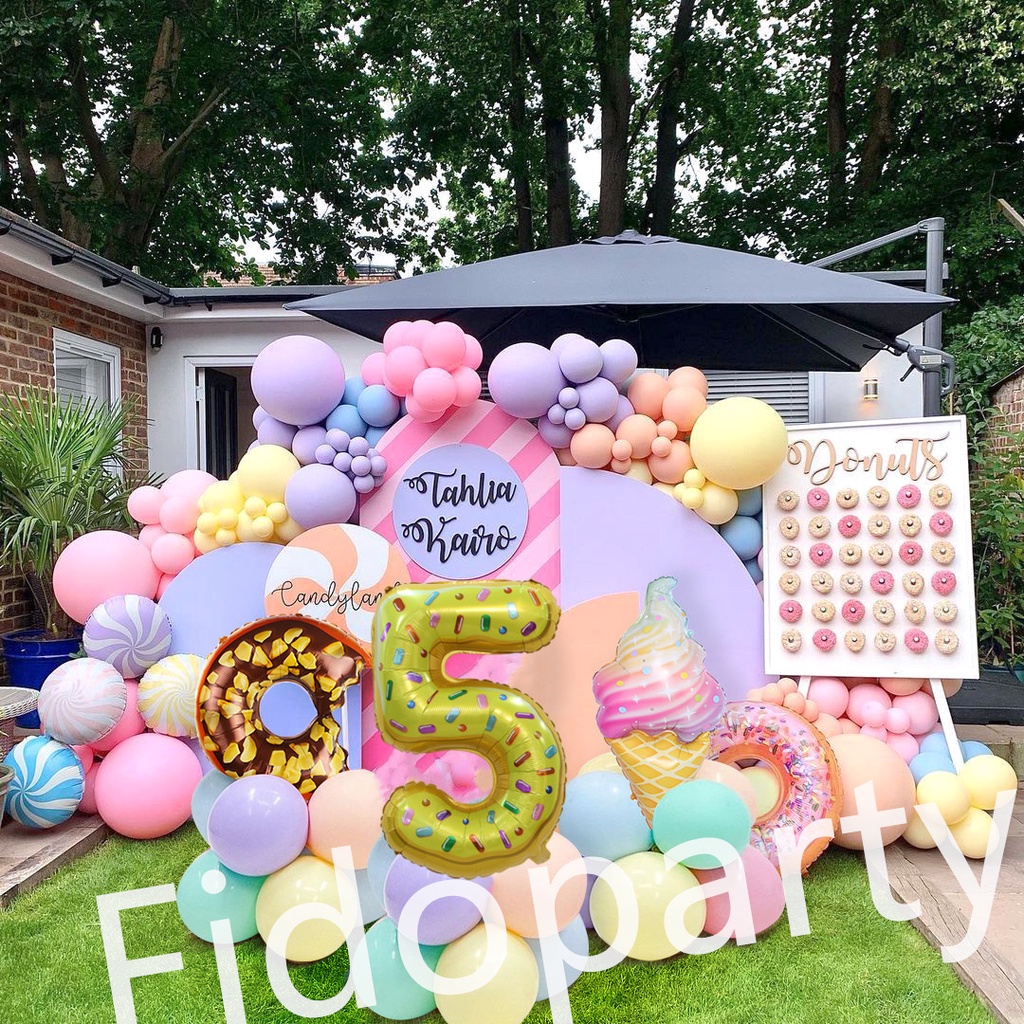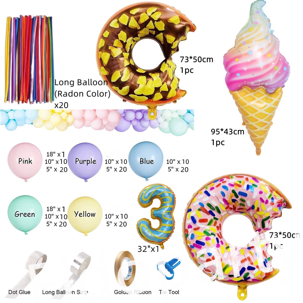180pcs Donut Colorful Ice Cream 32 Inch Aluminum Film Balloons Number Balloon Party Decoration Set Macaron Latex Balloon