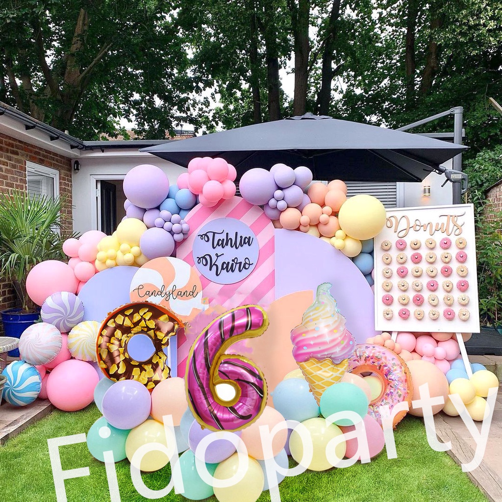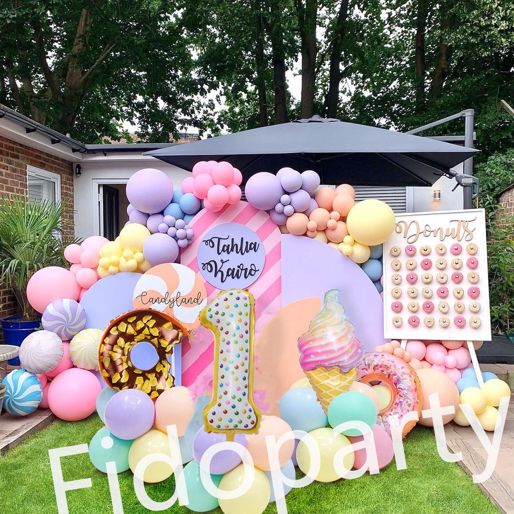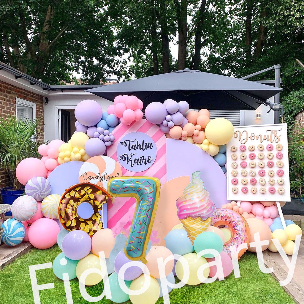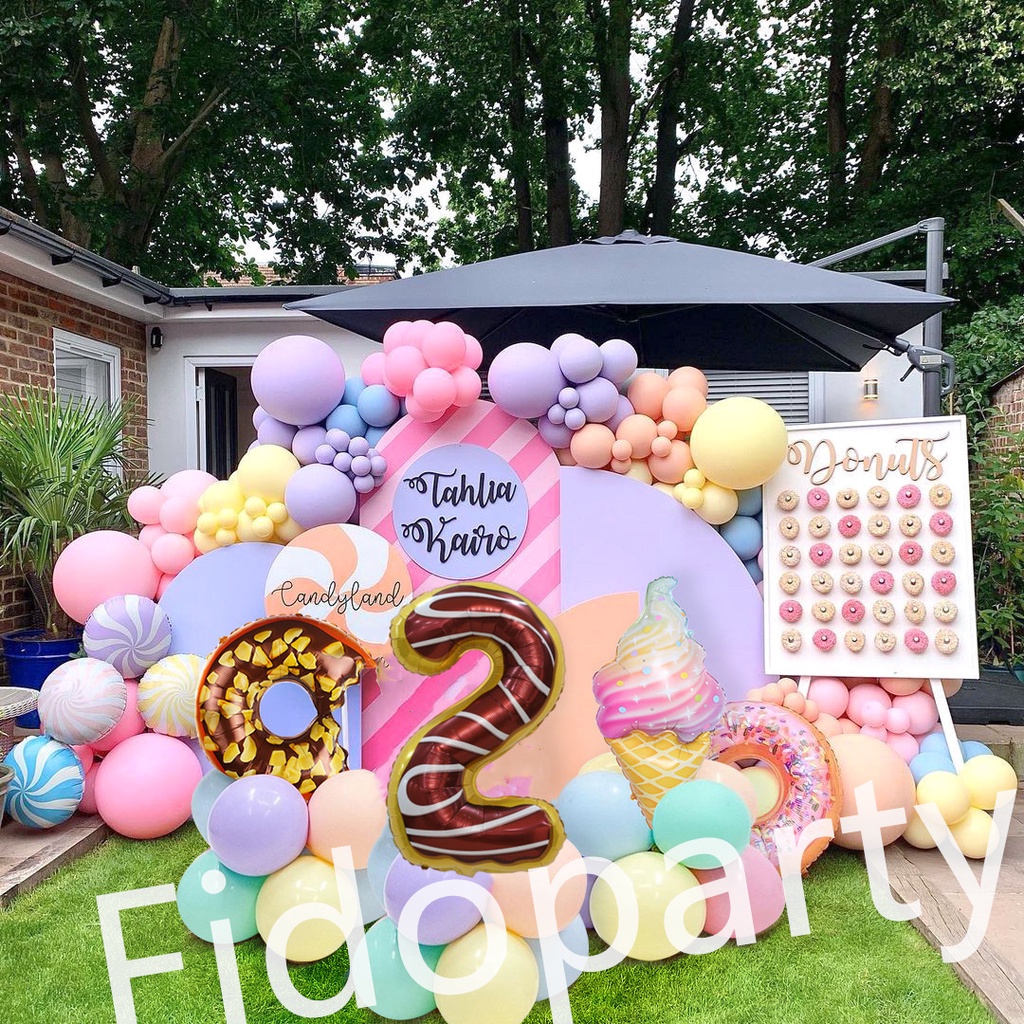 180pcs Donut Colorful Ice Cream 32 Inch Aluminum Film Balloons Number Balloon Party Decoration Set Macaron Latex Balloon