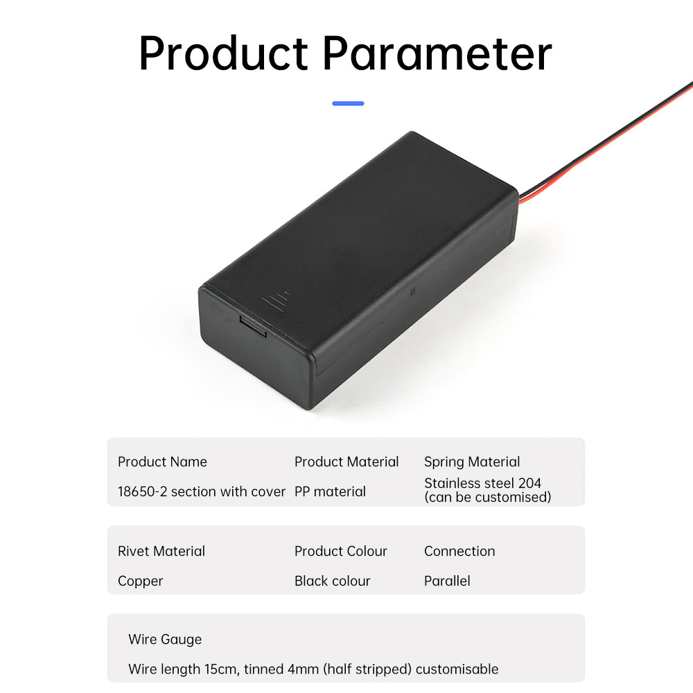 18650 Battery Box 2-Slot with Covers and Wires Connected in Parallel 3.7V Battery Box