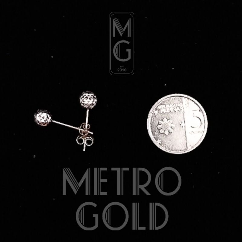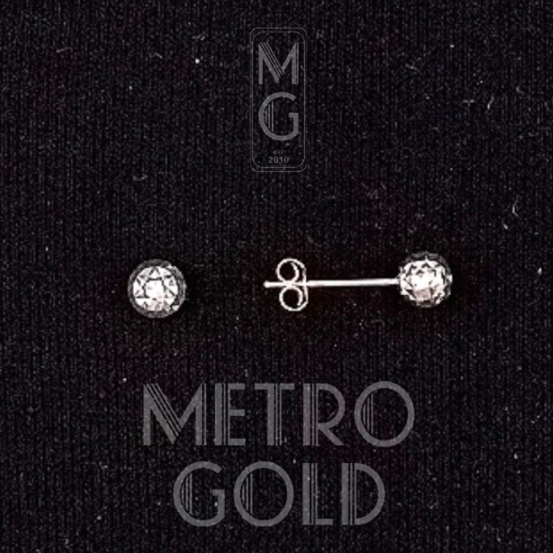 18K Saudi WHITE Gold Criss-Cross Ball Stud Earrings