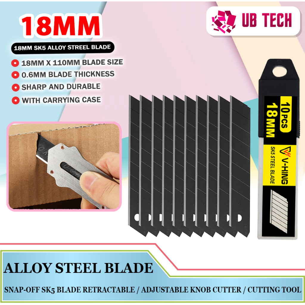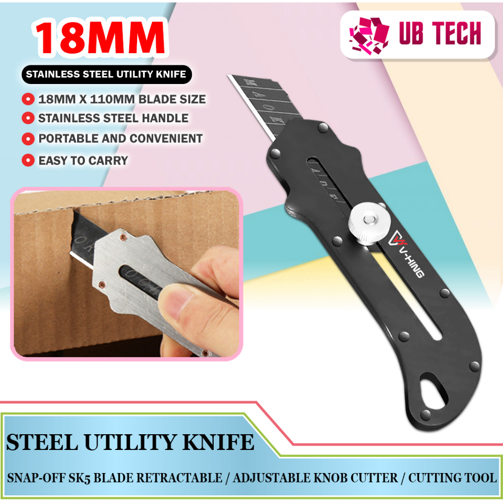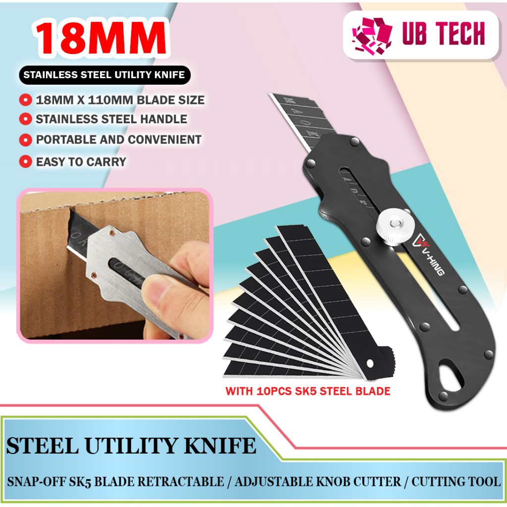 18mm Stainless Steel Utility Knife Snap-Off SK5 Blade Retractable / Adjustable Knob Cutter / Cutting